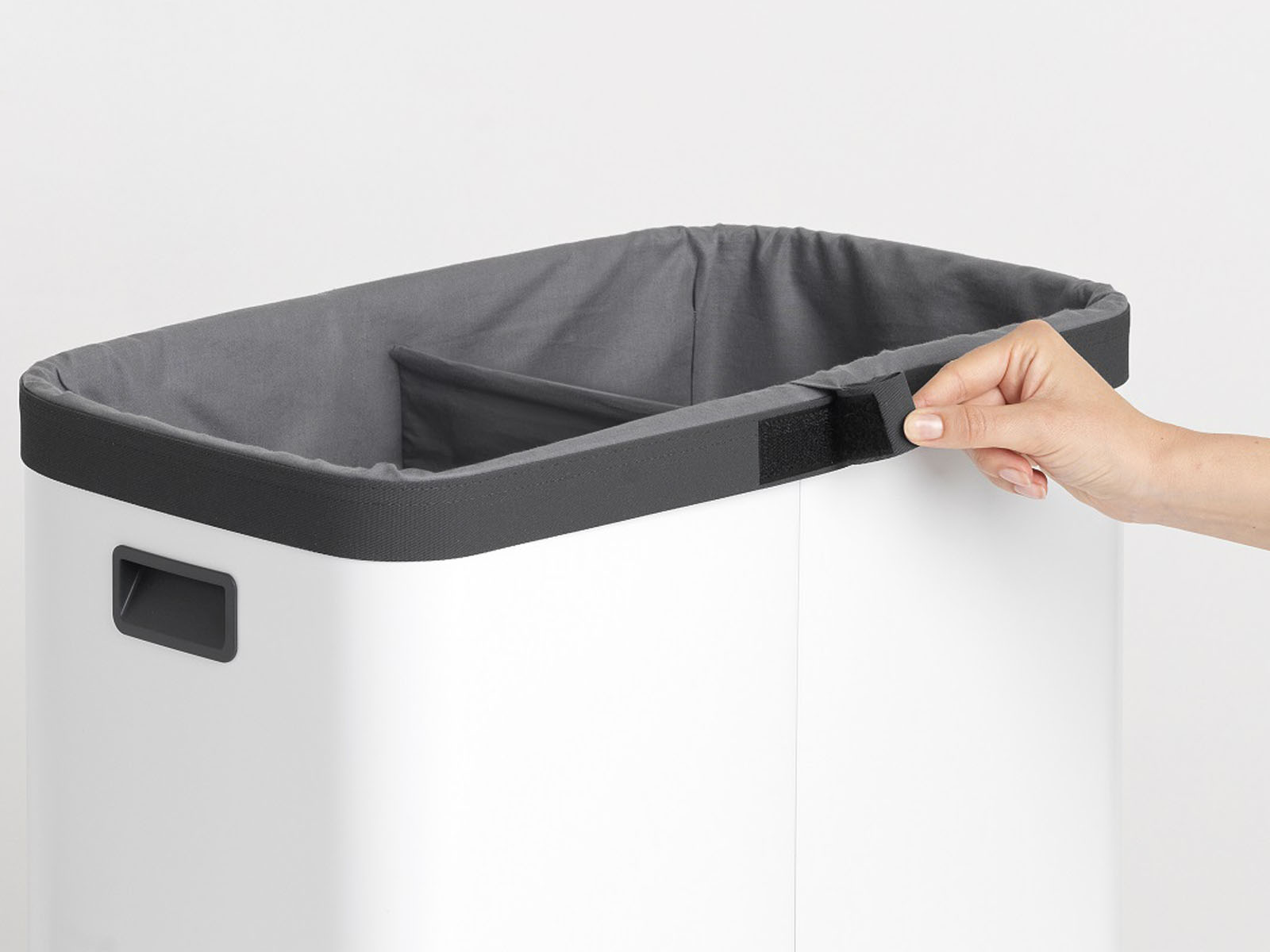 Kosze Brabantia Bo Laundry są wykonane z wysokiej jakości stali nierdzewnej, wyposażone w wewnętrzny worek, który swobodnie można wyjąć podczas przenoszenia prania do pralki. Przemyślana konstrukcja eliminuje konieczność otwierania pokrywy podczas wkładania prania do kosza. Prostokątny kształt kosza sprawia, że kosz zajmuje mało miejsca. Idealnie przylega do ściany, można go również ustawić w rogu pomieszczenia.