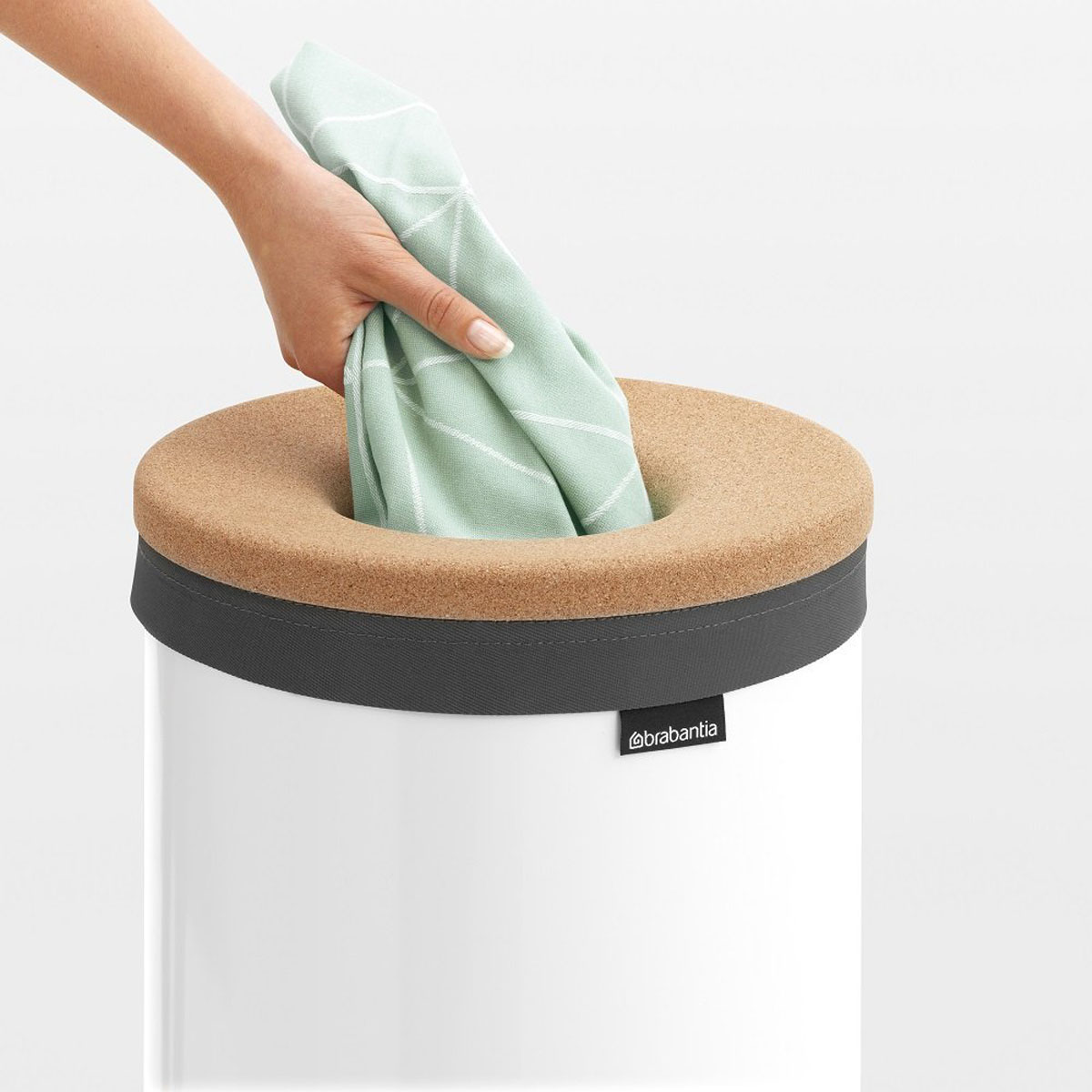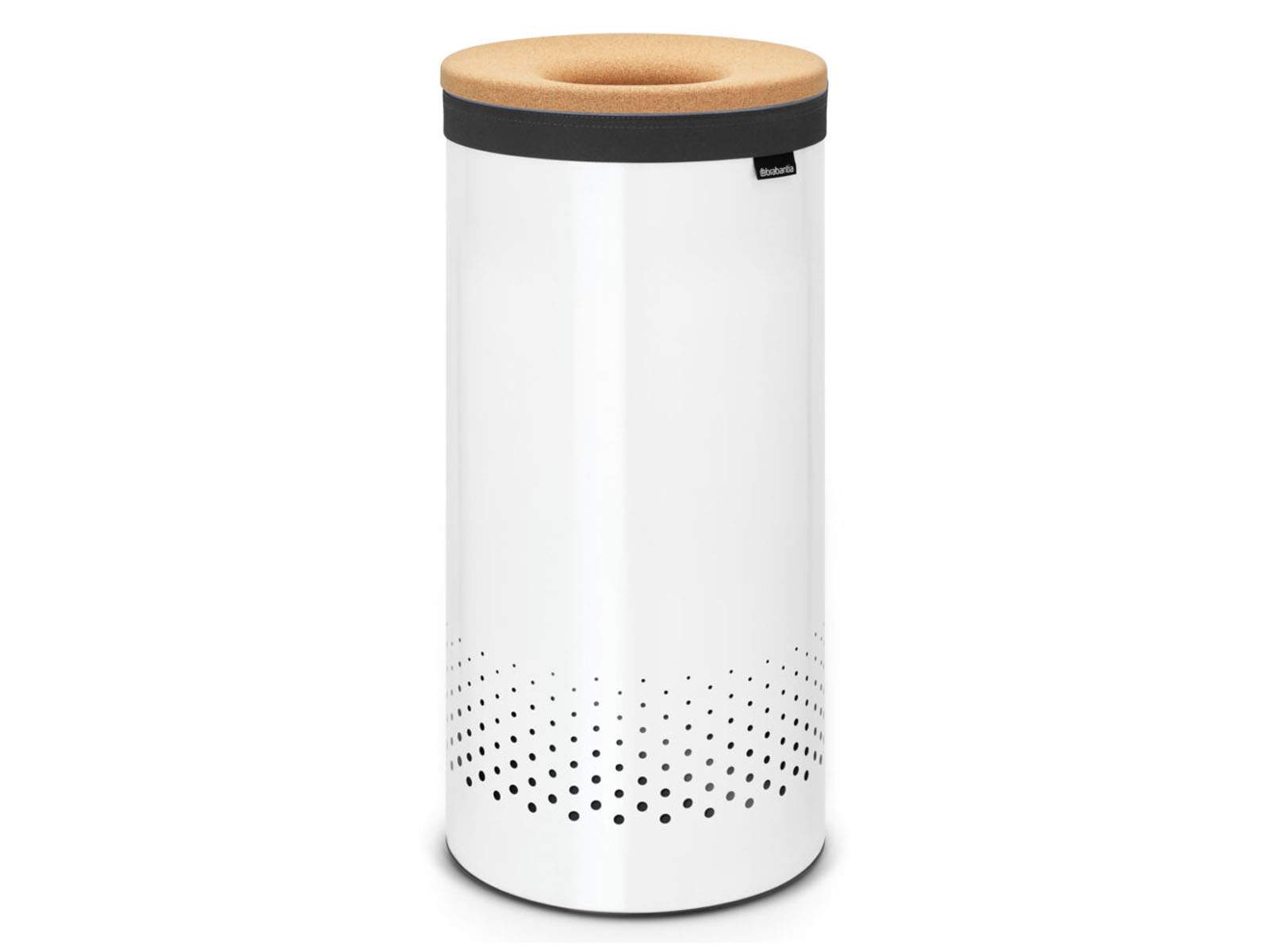 Pokrywa kosza wykonana z naturalnego korka, posiada okrągły otwarty otwór wrzutowy Quick-drop, dzięki któremu pranie można wrzucić bezpośrednio do środka bez otwierania klapy.