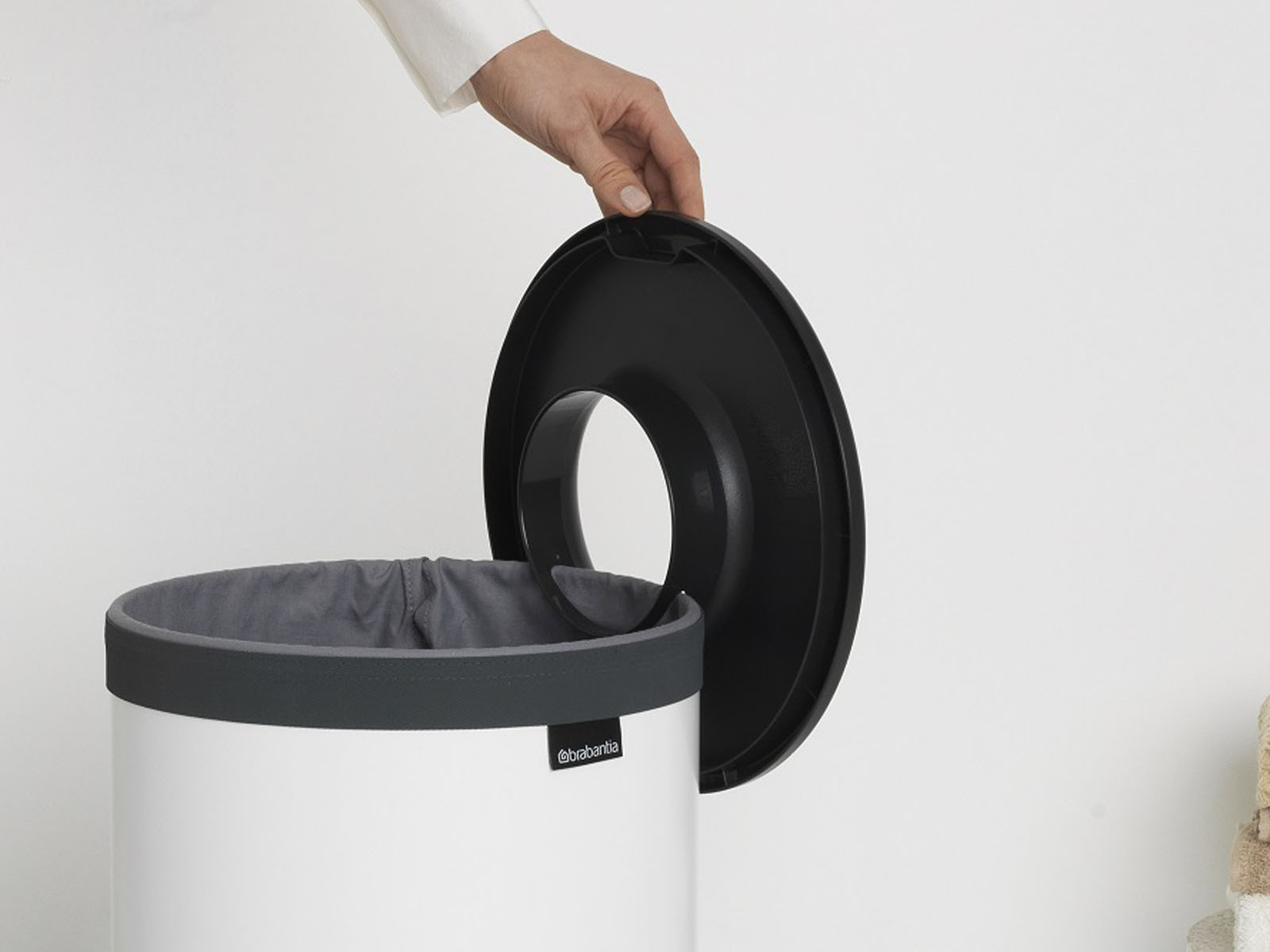 Wewnętrzny worek wykonany z bawełny dobrze dopasowany, łatwy do zakładania i zdejmowania z eleganckim zapięciem na rzep, umożliwia łatwe przenoszenie prania do pralki. Worek higieniczny można go prać w pralce.
