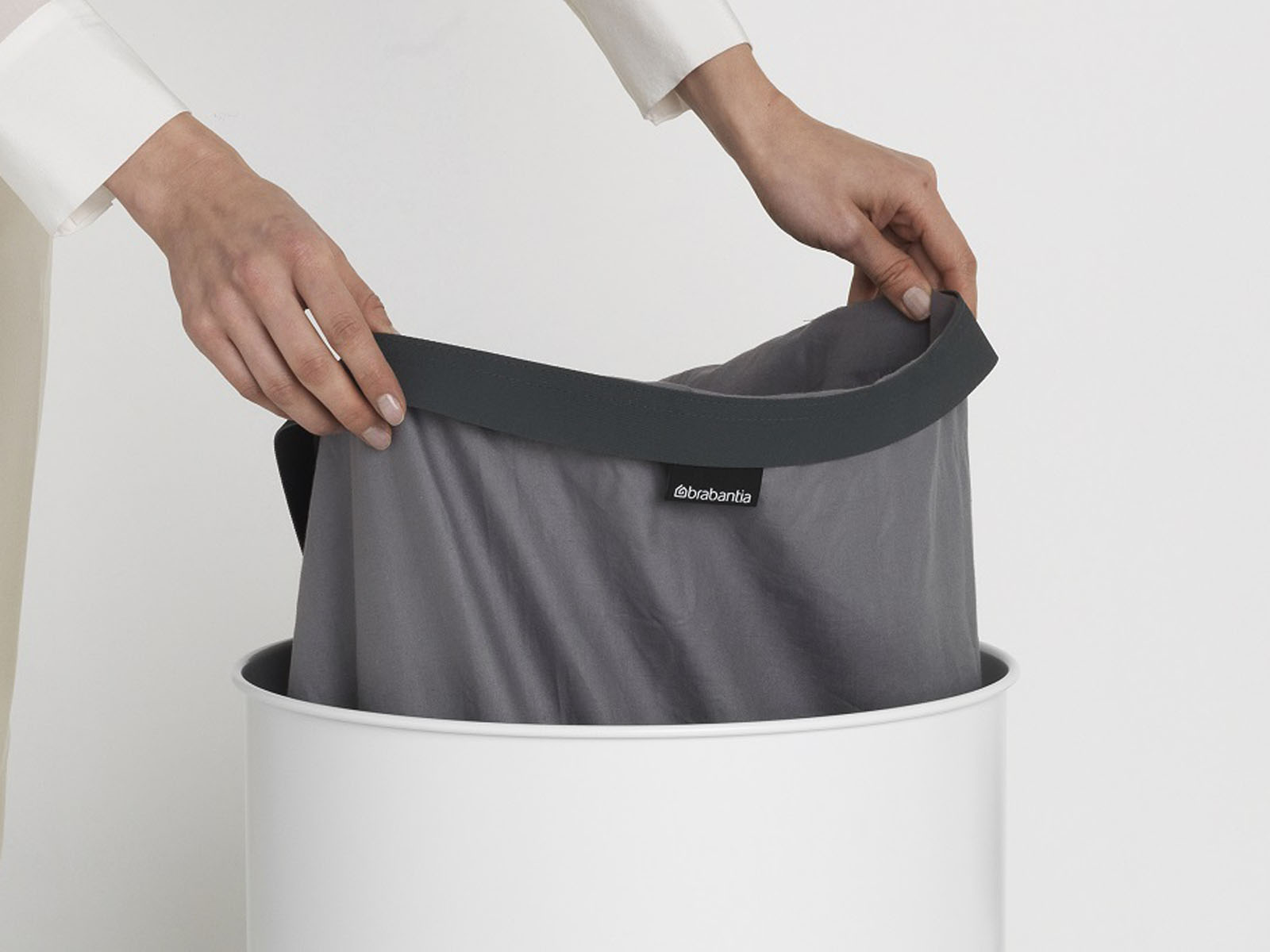Wewnętrzny worek wykonany z bawełny dobrze dopasowany, łatwy do zakładania i zdejmowania z eleganckim zapięciem na rzep, umożliwia łatwe przenoszenie prania do pralki. Worek higieniczny można go prać w pralce.