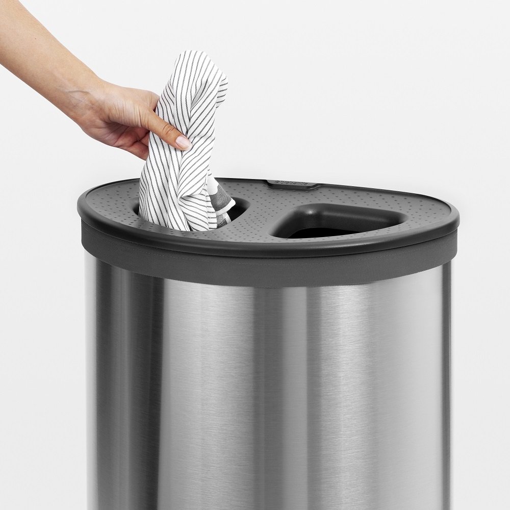 Kosze Brabantia Selector Laundry to funkcjonalna modyfikacja klasycznych koszy, które są wykonane z wysokiej jakości stali nierdzewnej, wyposażone w wewnętrzny worek, który swobodnie można wyjąć podczas przenoszenia prania do pralki. To co wyróżnia kosze Selector to ich nerkowaty kształt umożliwiający dostawienie koszy pod ścianą oraz dwukomorowy worek na pranie i dwuotworowa pokrywa. Przemyślana konstrukcja eliminuje konieczność otwierania pokrywy podczas wkładania prania do kosza. Kosze posiadają szereg otworów wentylacyjnych, dzięki którym ubrania nie wilgotnieją.