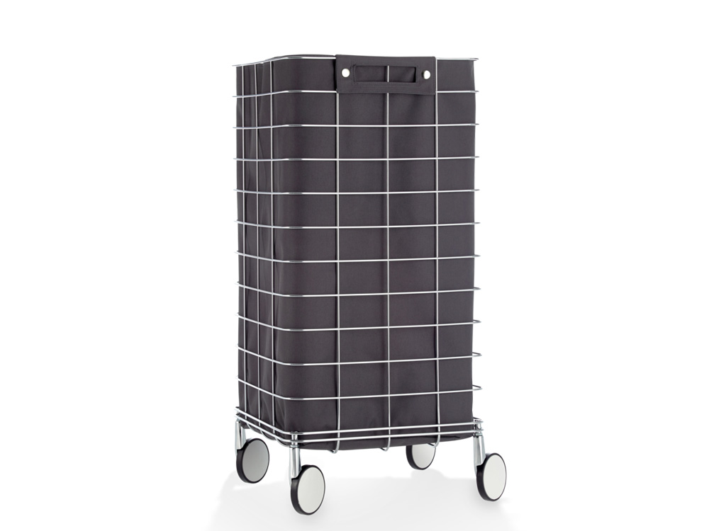 Na metalowej konstrukcji kosza umocowany jest worek wykonany z wodoodpornego nylonu, worek można zdjąć do prania.
