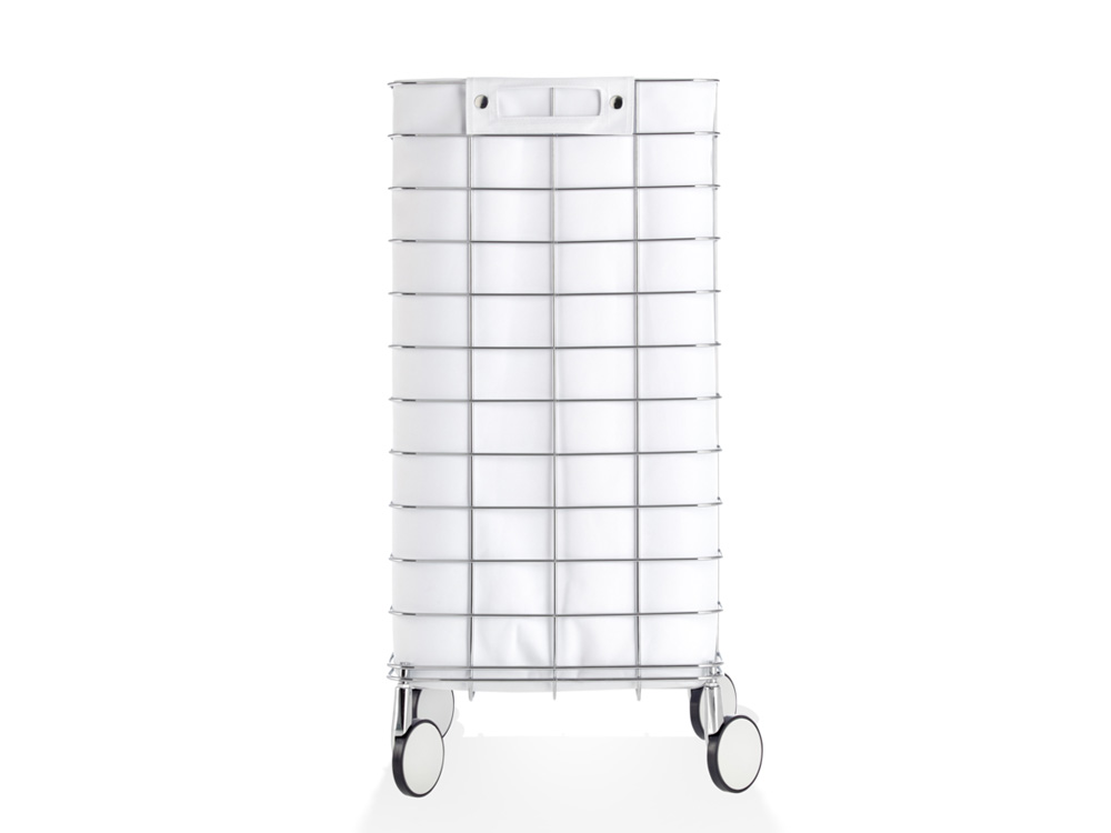 Na metalowej konstrukcji kosza umocowany jest worek wykonany z wodoodpornego nylonu, worek można zdjąć do prania.