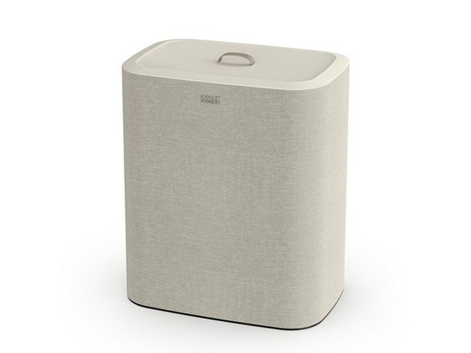 Konstrukcja kosza oraz pokrywa wykonane z tworzywa sztucznego, obudowa kosza wykonana z łatwej w utrzymaniu w czystości tkaniny poliestrowej.