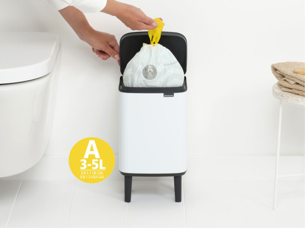 W zestawie z koszem znajduje się również pakiet startowy worków Brabantia PerfectFit Bags 3-4 litry (rozmiar A) dopasowanych do rozmiaru pojemnika.