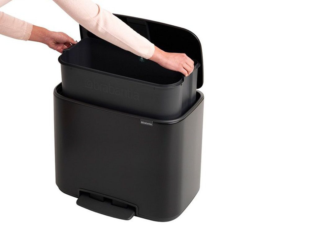 Kosz posiada jedną komorę z wewnętrznym plastikowym pojemnikiem o pojemności 36 litrów, który można swobodnie wyjąć podczas opróżniania go i wymiany worka.