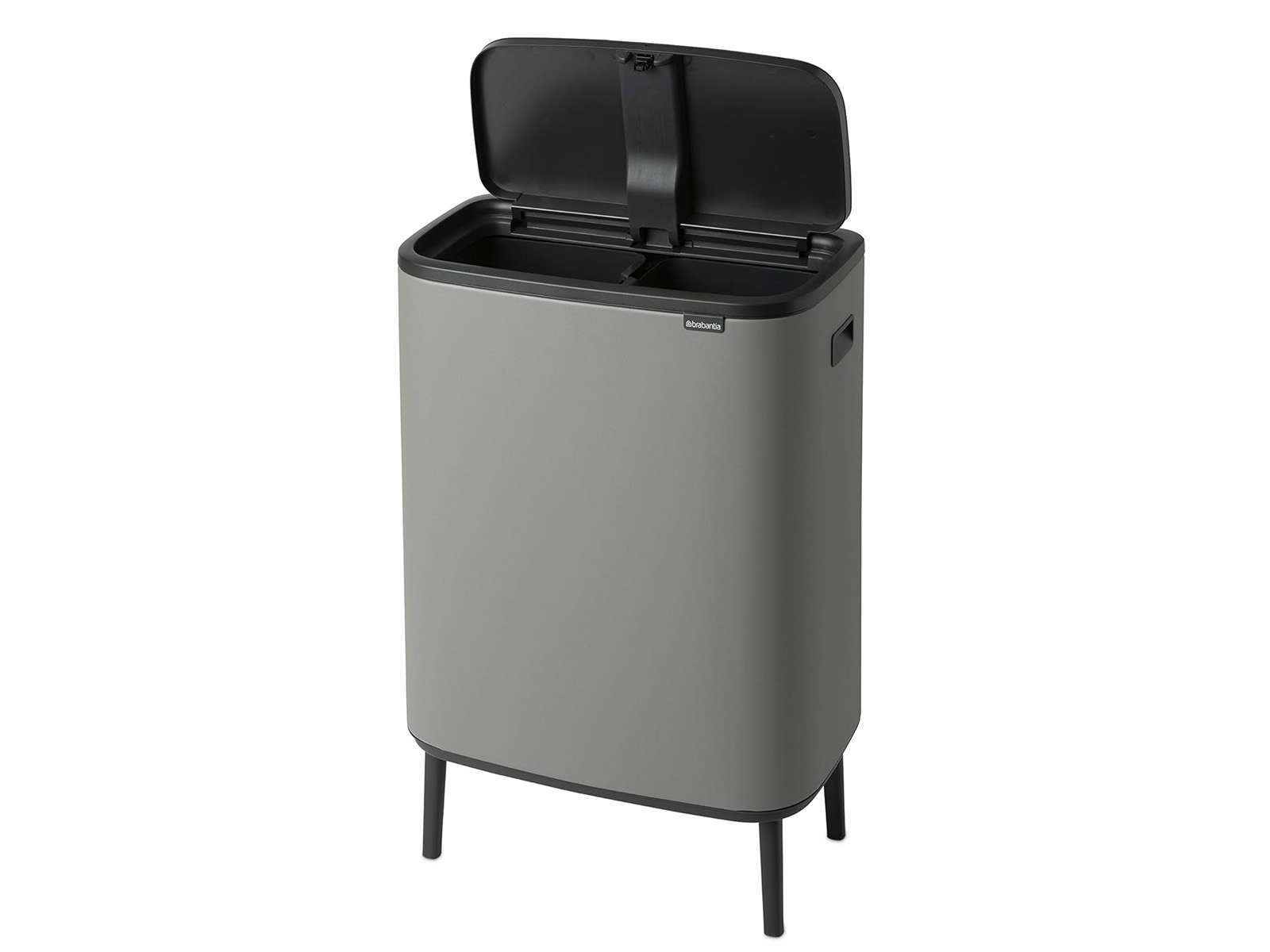 Kosz posiada dwie równej wielkości komory z wewnętrznymi plastikowymi pojemnikami o pojemności 30 litrów każdy (w sumie 60 litrów), które można swobodnie wyjąć podczas opróżniania go i wymiany worków.
