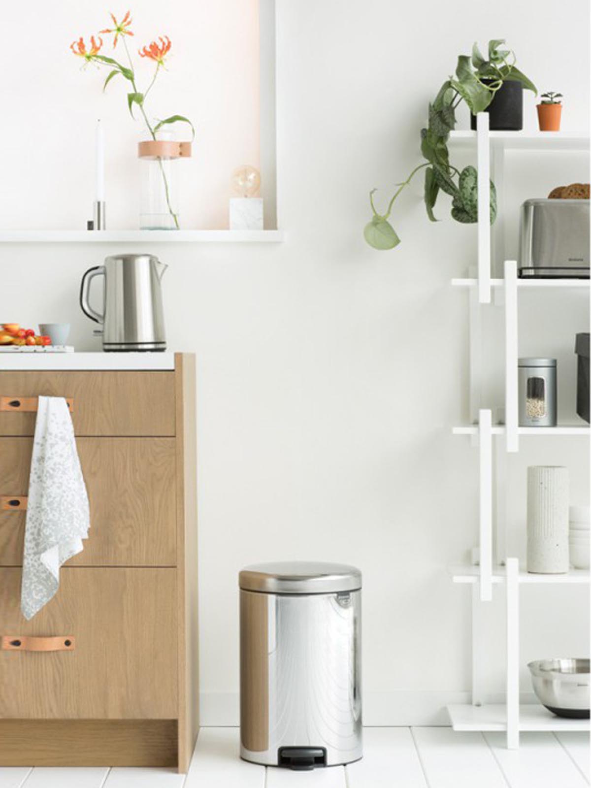 Uniwersalny pedałowy koszy na śmieci ze szczelną bezgłośnie zamykającą się pokrywą z kolekcji NewIcon idealny do każdego pomieszczenia, w którym przydałby się efektowny kosz.