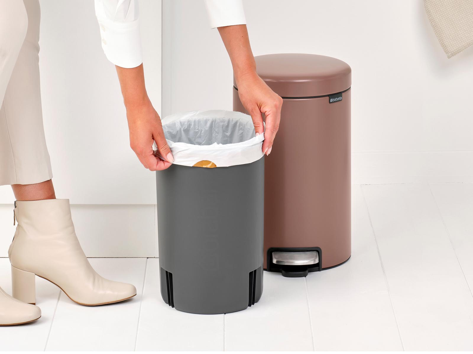 W zestawie z koszem znajduje się pakiet startowy worków Brabantia PerfectFit Bags 10-12 litrów (rozmiar X) dopasowanych do rozmiaru pojemnika.