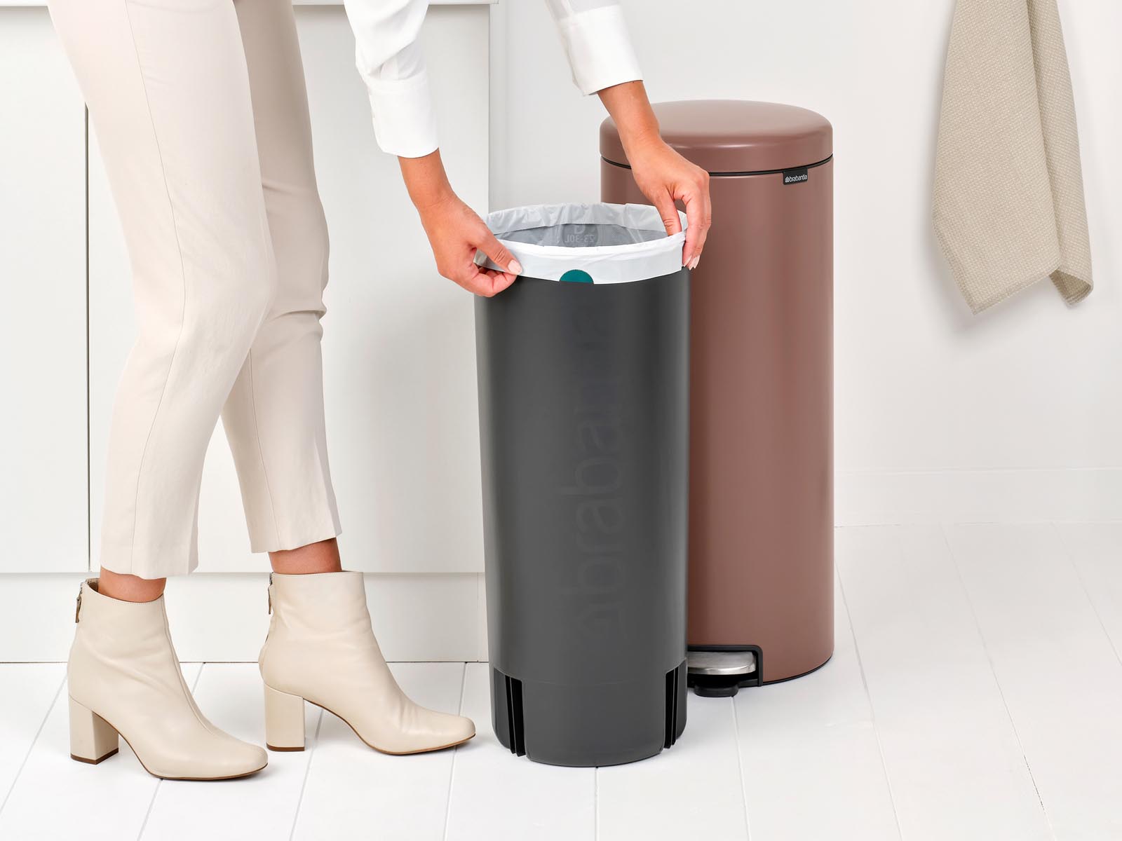 W zestawie z koszem znajduje się pakiet startowy worków Brabantia PerfectFit Bags 23-30 litrów (rozmiar G) dopasowanych do rozmiaru pojemnika.