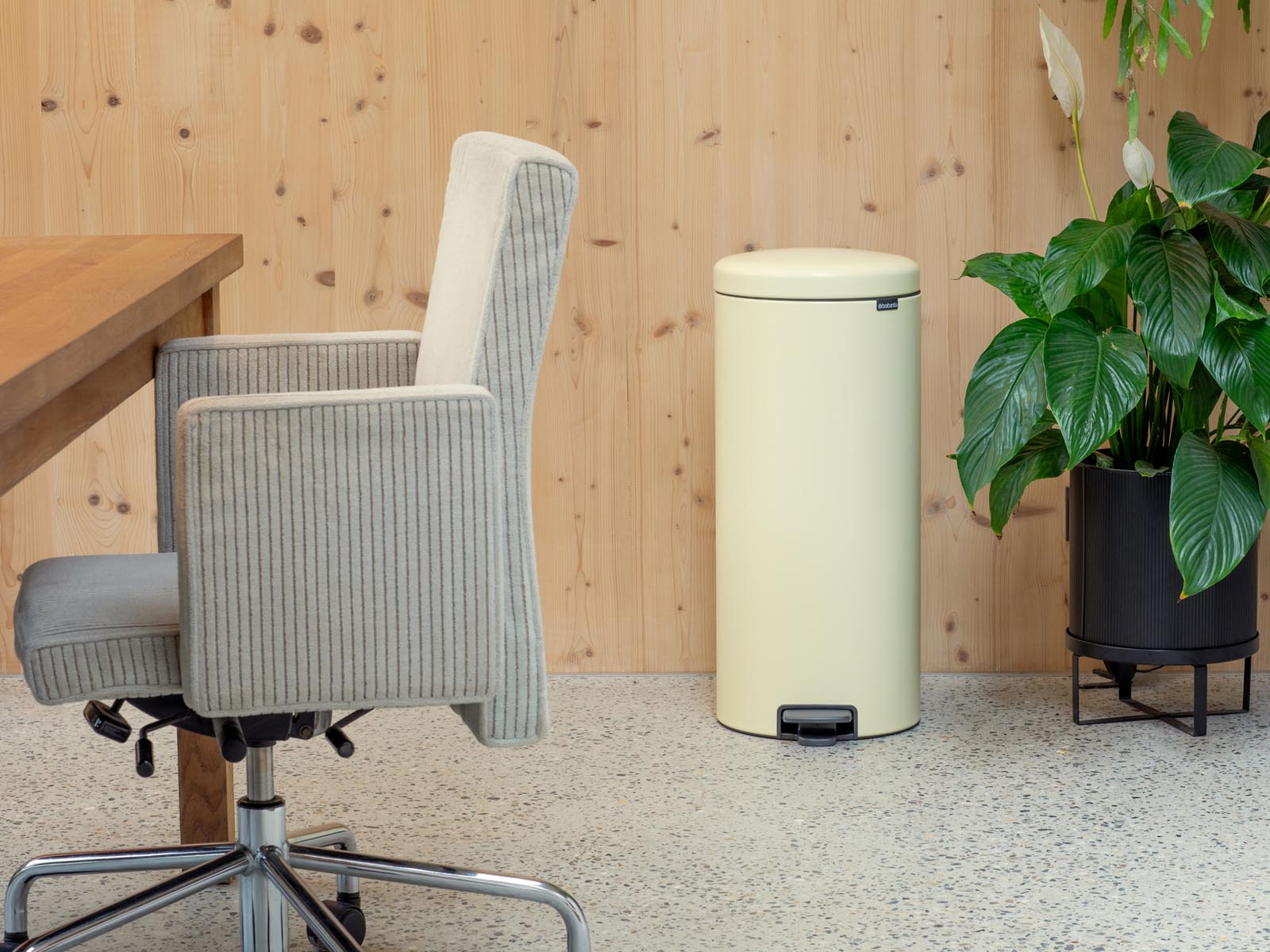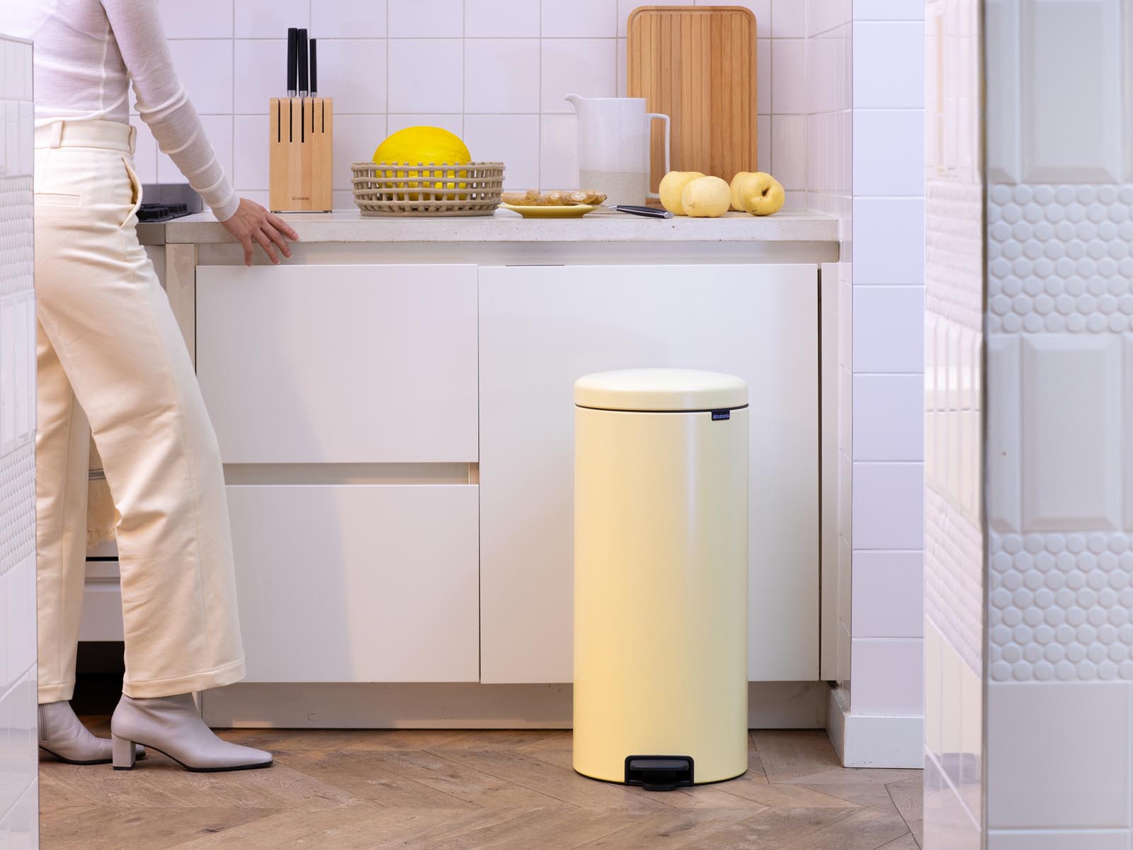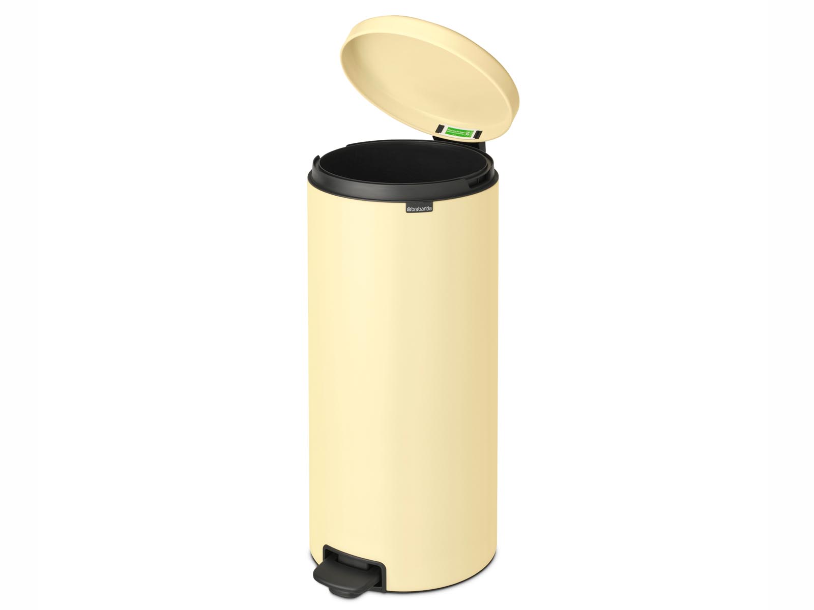 Ulepszony mechanizm pedałowy ułatwia otwieranie kosza, a wolnoopadająca pokrywa opada powoli i bezszelestnie.