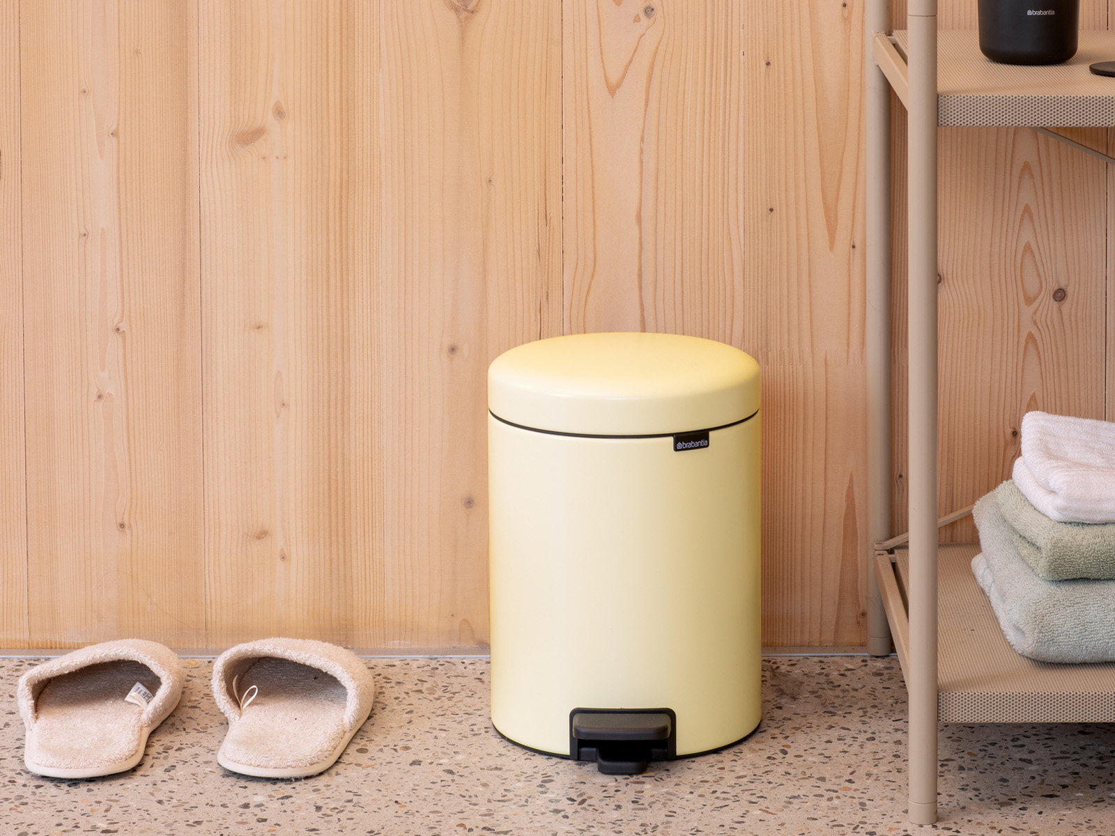 Uniwersalny pedałowy koszy na śmieci ze szczelną bezgłośnie zamykającą się pokrywą z kolekcji NewIcon przeznaczony do różnych pomieszczeń przede wszystkim do łazienek.