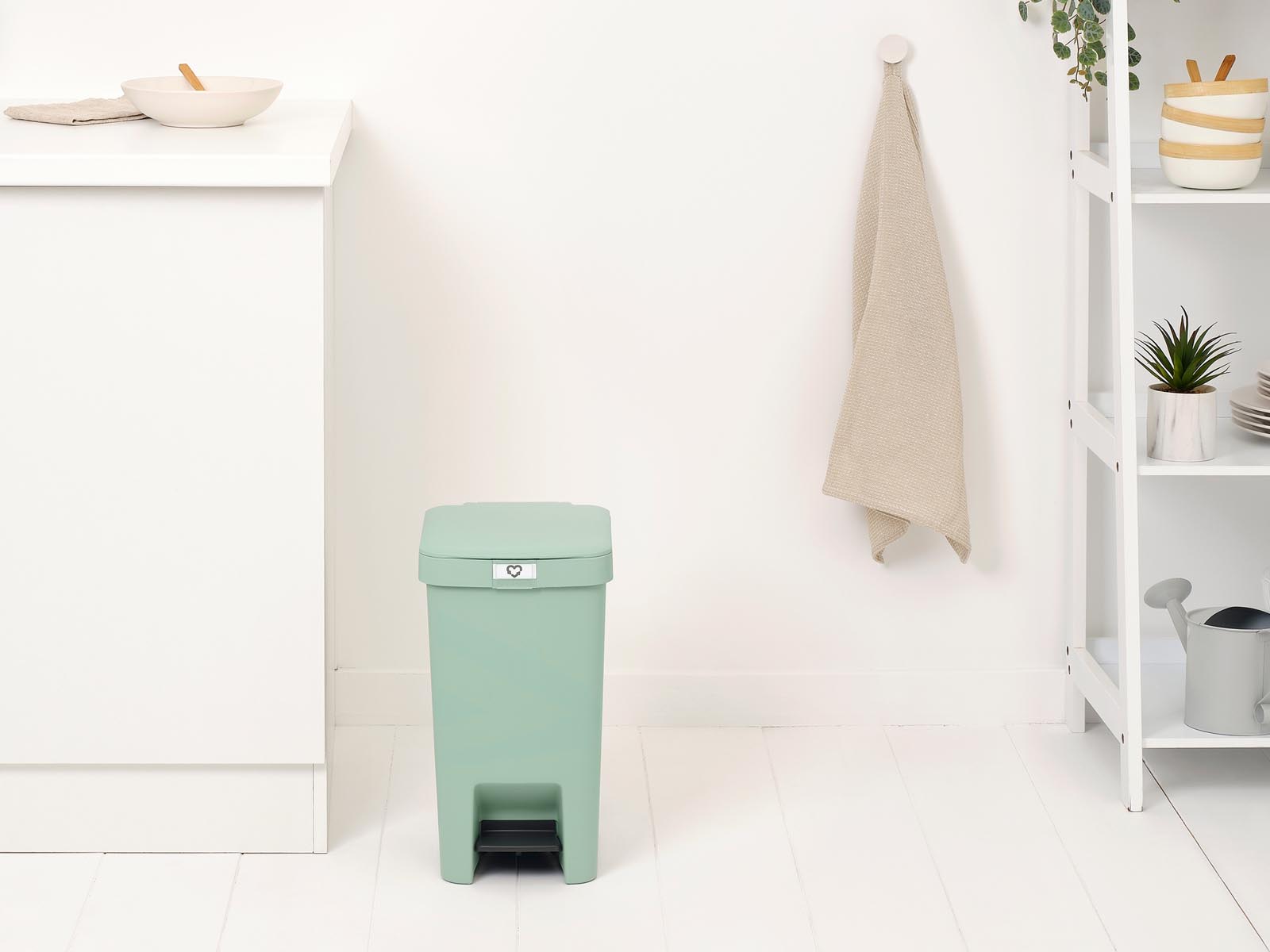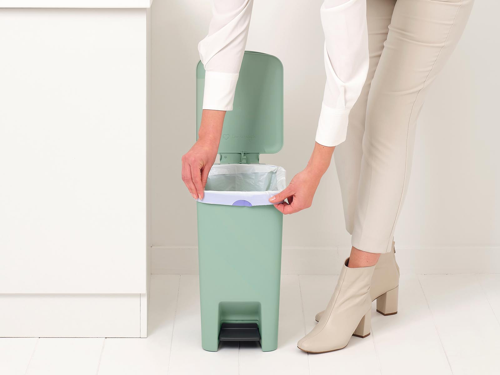 Ekologiczny pedałowy kosz na śmieci z bezgłośnie zamykającą się klapą z kolekcji StepUp.