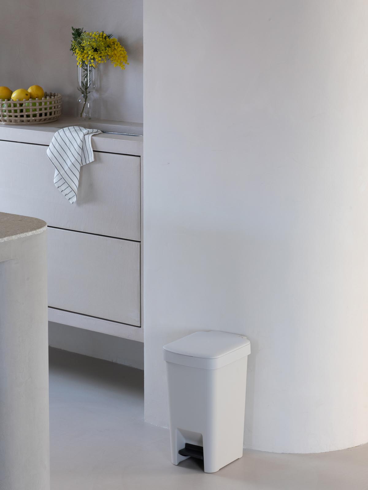 Ekologiczny niewielki pedałowy kosz na śmieci z bezgłośnie zamykającą się klapą z kolekcji StepUp.