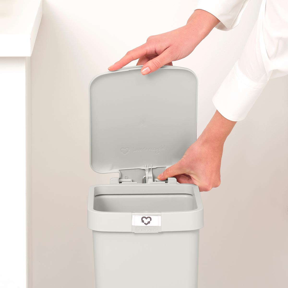 Ponadto na kołnierzu kosza znajduje się zatrzaskowy uchwyt na etykiety do oznaczenia odpadów do recyklingu.