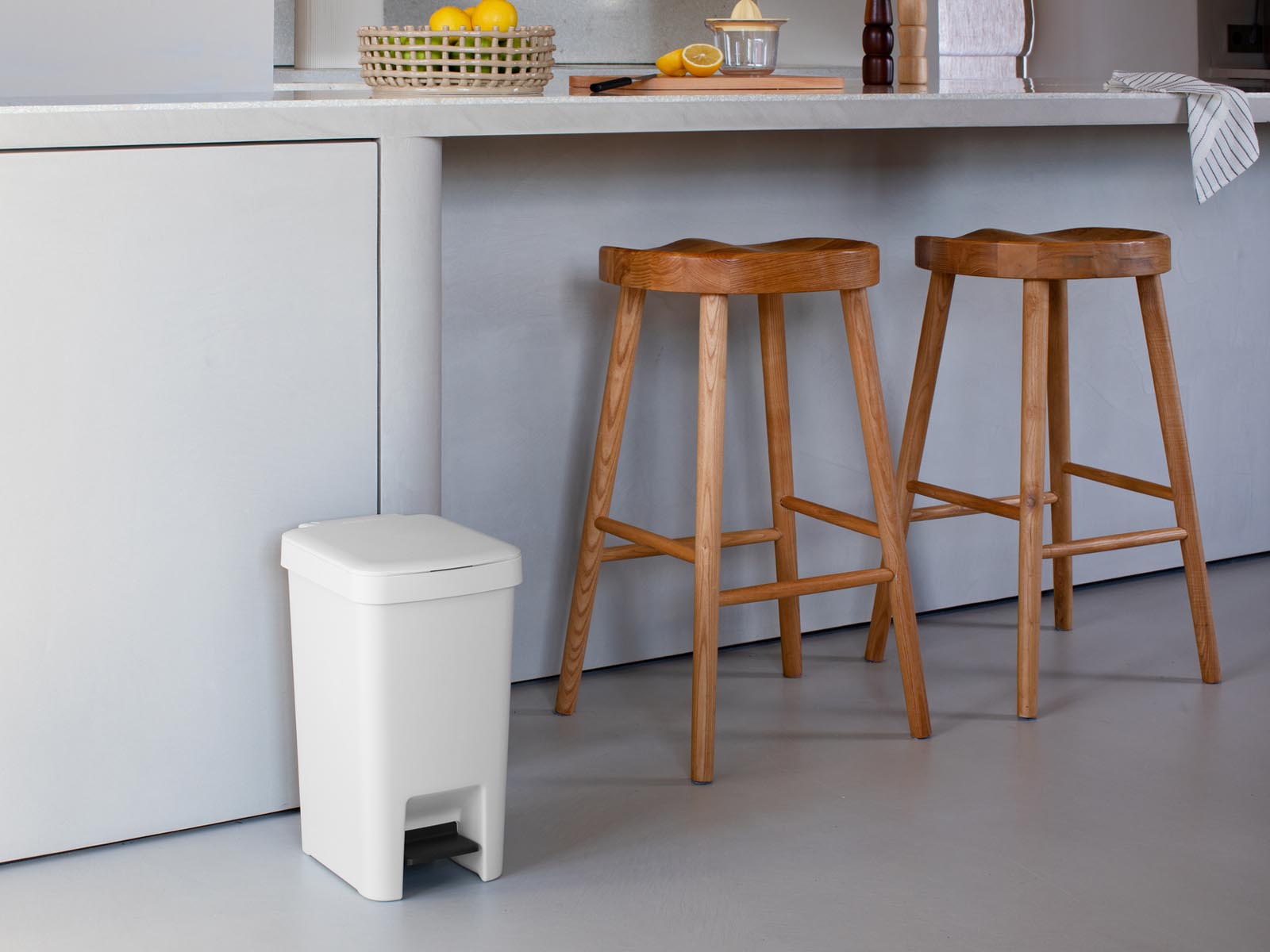 Ekologiczny pedałowy kosz na śmieci z bezgłośnie zamykającą się klapą z kolekcji StepUp.