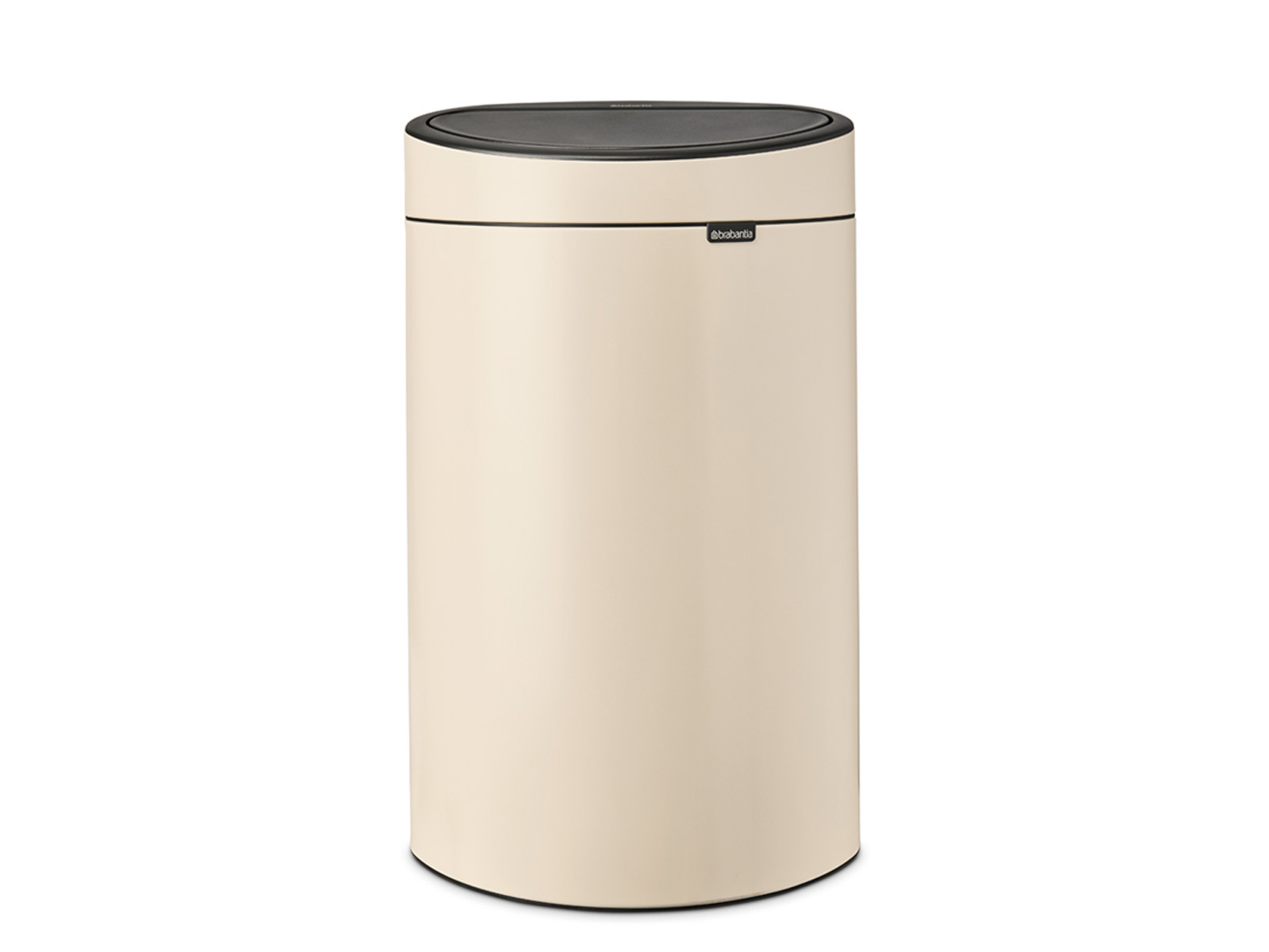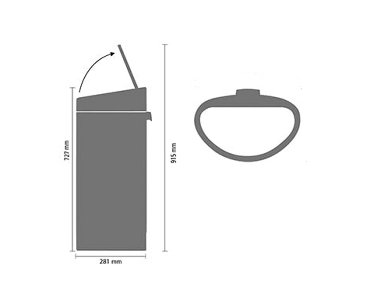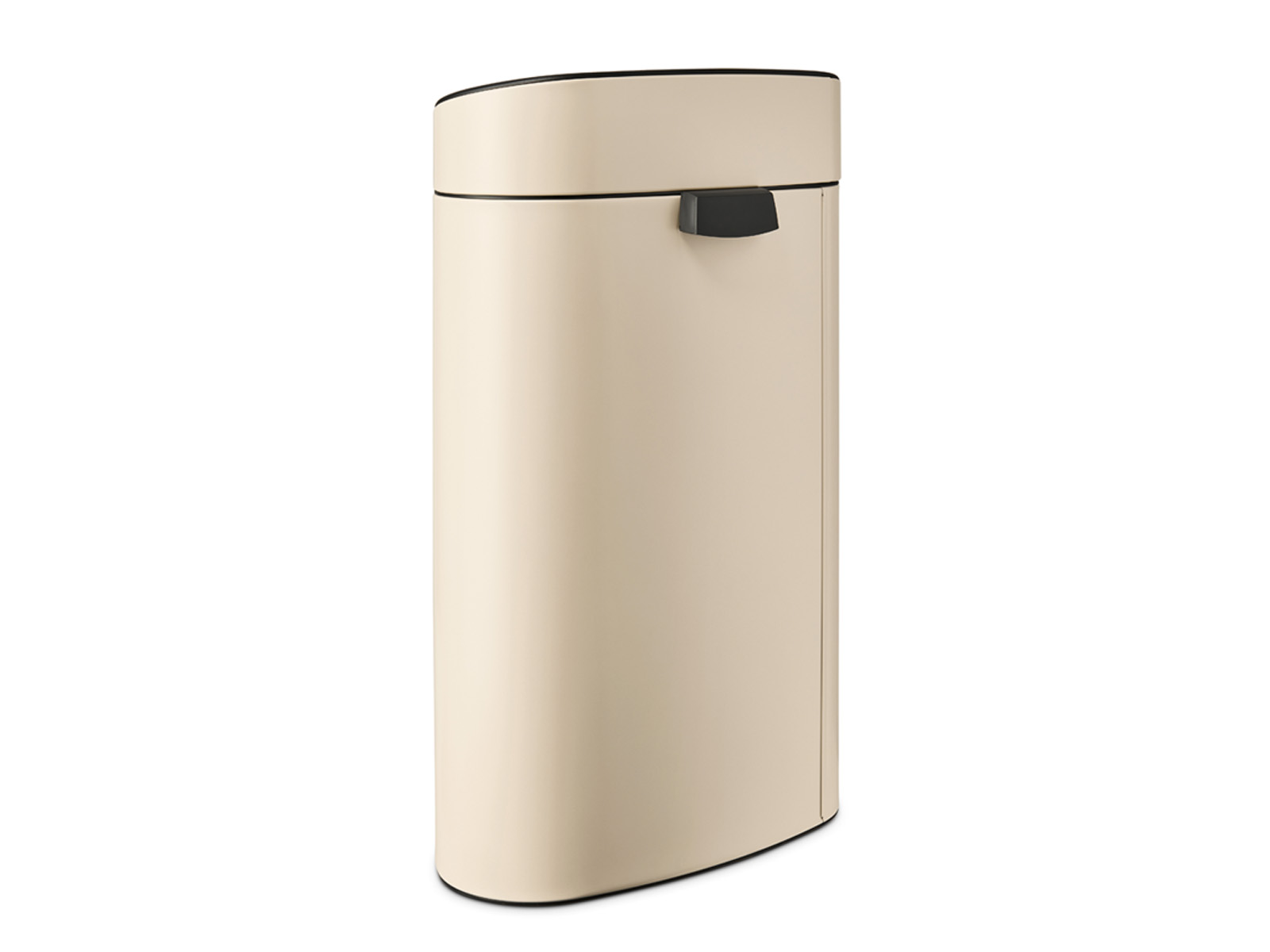 Pokrywa kosza z dużą klapą w kolorze ciemnoszarym umieszczoną pod lekkim skosem - klapa kosza z systemem otwierania typu soft-touch, otwiera się przy najlżejszym dotknięciu oraz delikatnie opada po otwarciu.