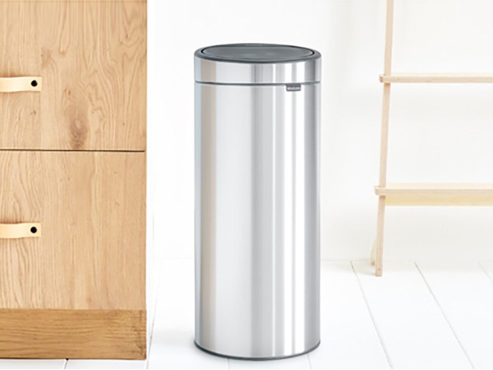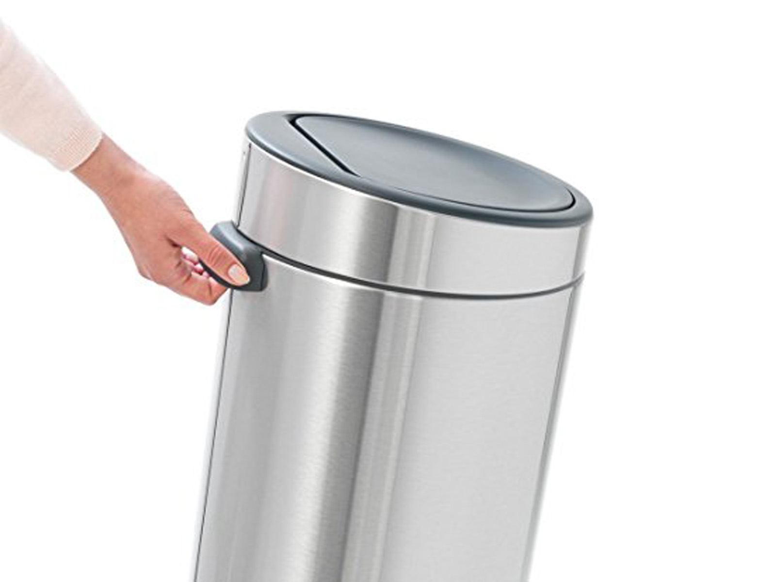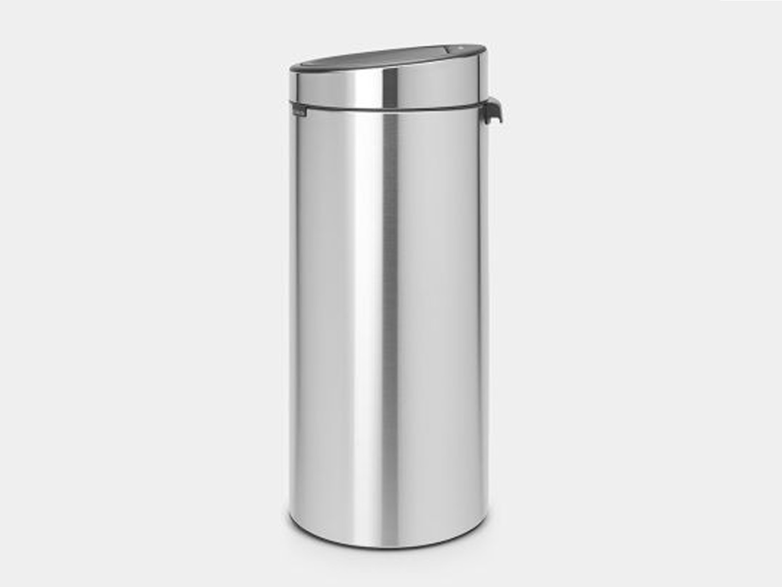 Funkcjonalny wysoki smukły kosz na śmieci otwierany dotykowo o pojemności 30 litrów.