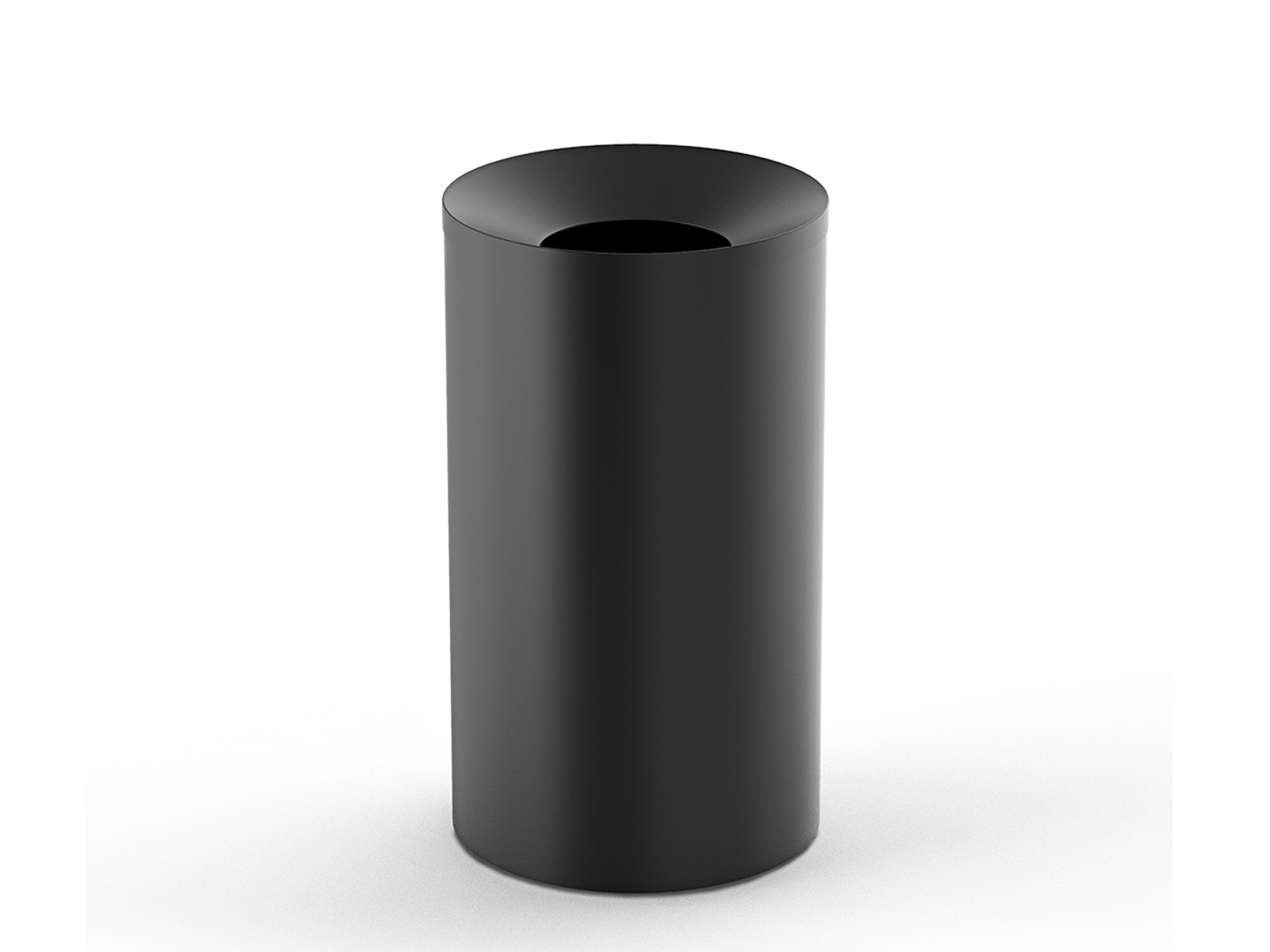 Elegancki wysoki duży kosz na śmieci o cylindrycznym kształcie wykonany z wysokiej jakości lakierowanej stali nierdzewnej w wykończeniu matowym.