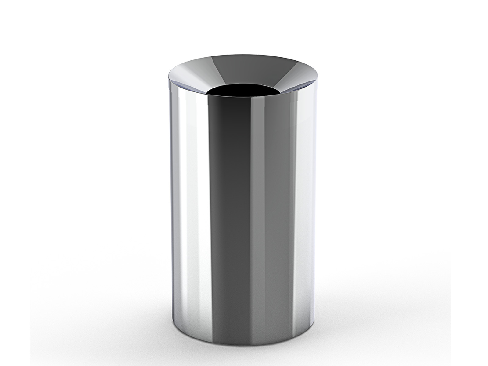 Elegancki wysoki duży kosz na śmieci o cylindrycznym kształcie wykonany z wysokiej jakości chromowanego mosiądzu.