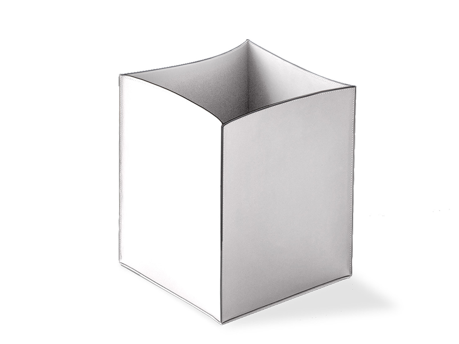 Elegancki otwarty kosz na śmieci o prostokątnym kształcie wykonany z wysokiej jakości skóry naturalnej.