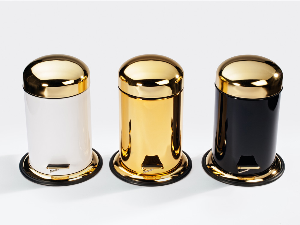 Elegancki łazienkowy kosz na śmieci o pojemności 3 litrów o cylindrycznym kształcie z poszerzaną podstawą.