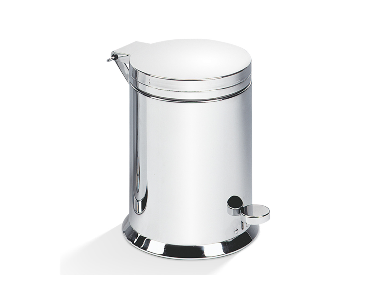 Elegancki łazienkowy kosz na śmieci o cylindrycznym kształcie wykonany ręcznie z wysokiej jakości chromowanego mosiądzu.