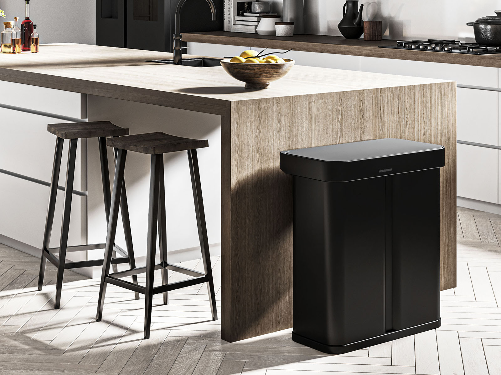 Prosty, elegancki i wytrzymały kosz został wykonany z wysokiej jakości szczotkowanej stali nierdzewnej z powłoką FPP (fingerprint proof - niewidoczna powłoka, na której nie pozostają smugi i odciski palców, produkt wolniej się kurzy, dłużej zachowuje czystość i atrakcyjny wygląd). Projektanci wyposażyli pojemnik w innowacyjną, niewidoczną na pierwszy rzut oka tylną "kieszeń" do przechowywania zapasu workówna śmieci. Dzięki niej worki są zawsze pod ręką.