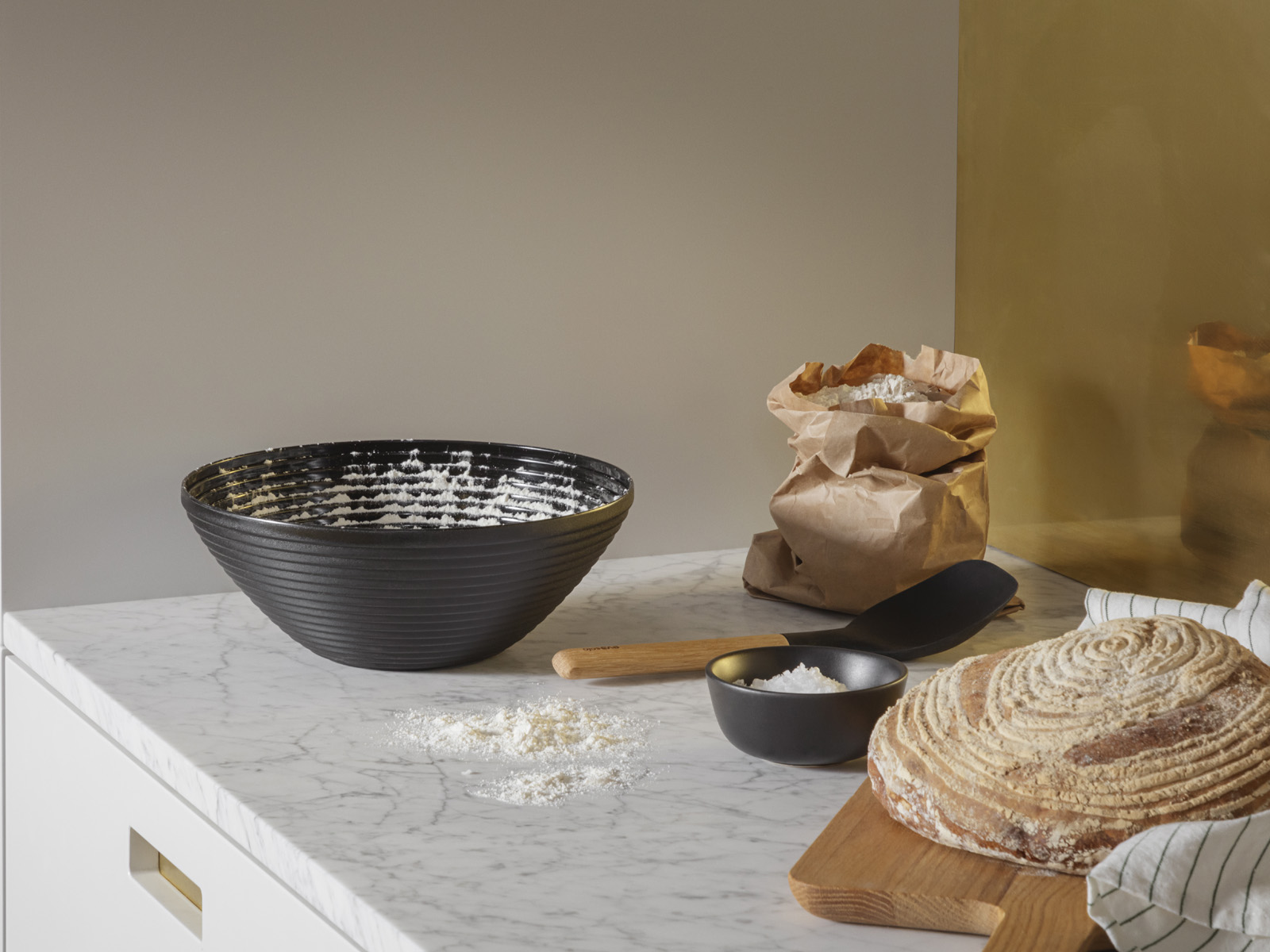Dzięki prążkowanym ściankom miska tworzy optymalne warunki do uzyskania puszystego ciasta - wewnętrzne rowki wraz z krzywizną ścianek tworzą "schody" zapewniają podparcie ciasta podczas jego wyrastania.
