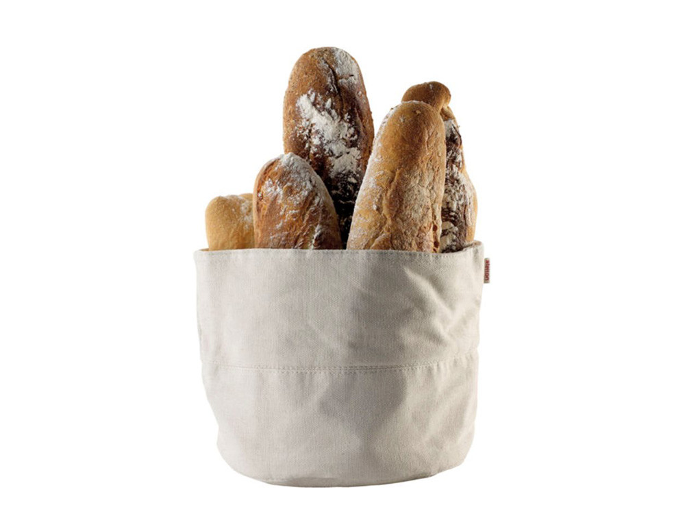 Dzięki solidnemu, oddychającemu materiałowi i odwijanemu kołnierzowi koszyk może służyć również do przechowywania pieczywa i innych drobnych przekąsek oraz niewielkich elementów wyposażenia kuchni i domu.