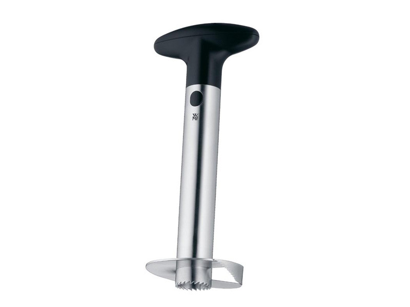 Krajacz w kształcie litery T wykonany z odpornej na zarysowania i kwasy owocowe stali nierdzewnej Cromargan® z wygodną ergonomiczną poprzeczną rączką z wysokiej jakości tworzywa sztucznego odpowiednią zarówno dla osób parwo i leworęcznych.