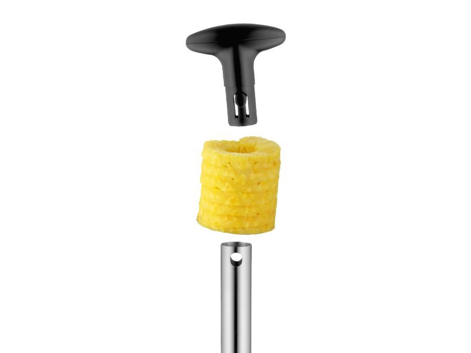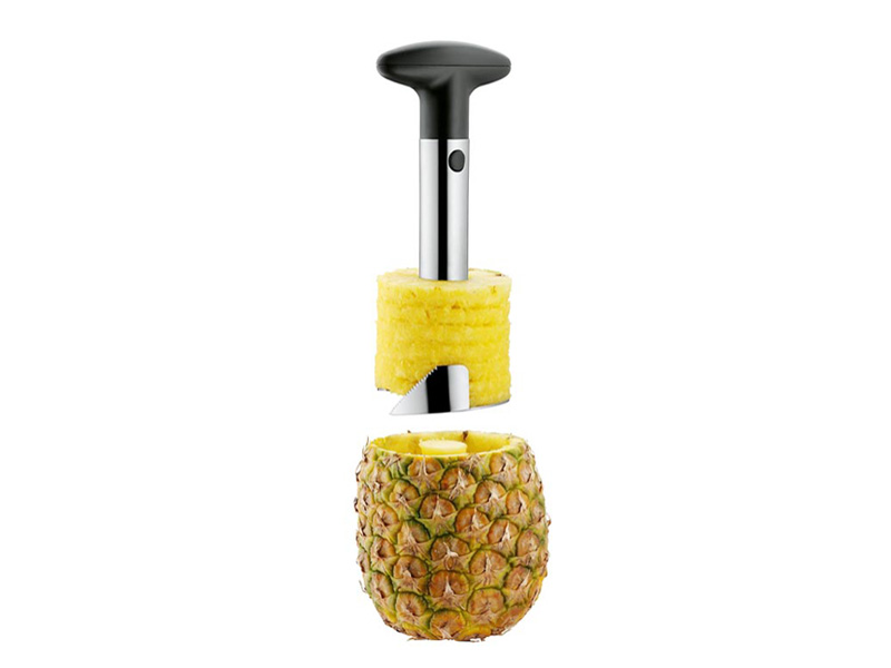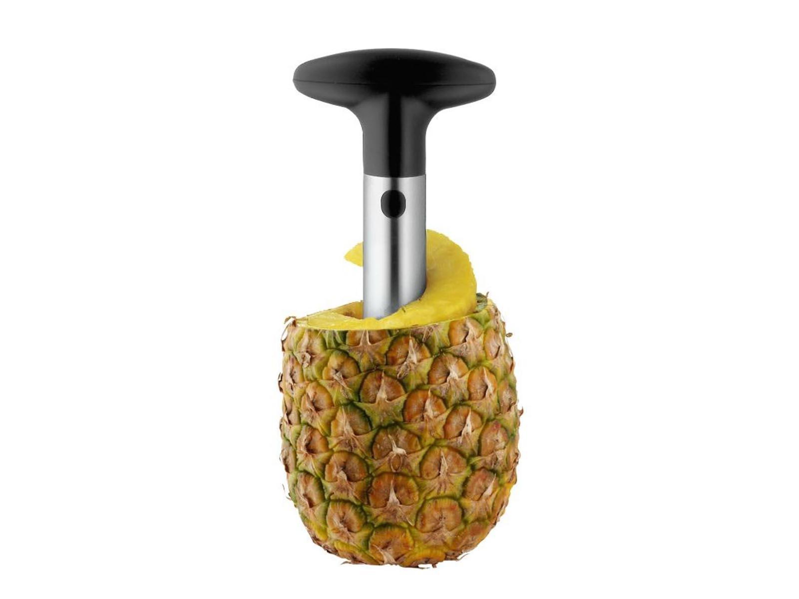 Elegancki ręczny obierak i wykrawacz do ananasa z niezwykle ostrą tarczą odkrawającą skórkę i tnącą owoc.