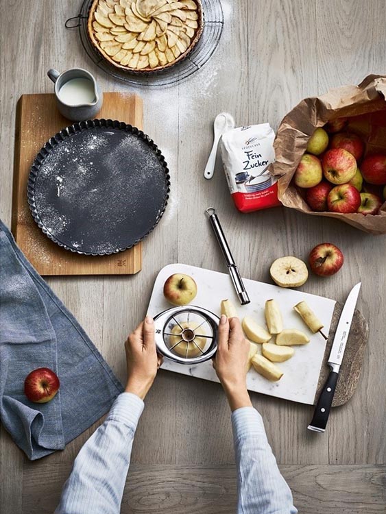 Elegancki i praktyczna ręczny krajacz do jabłek przydatny przy przygotowywaniu jabłek do ciast, sałatek lub przekąsek.