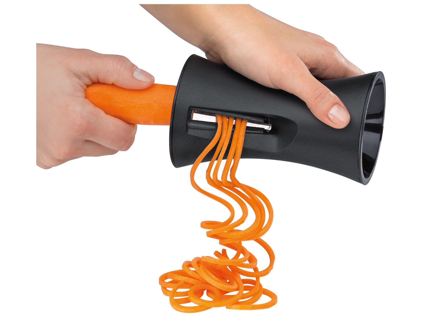 Praktyczny ręczny krajacz spiralizer do przygotowywania zdrowego warzywnego “spaghetti” oraz warzywnych dekoracji talerzy.