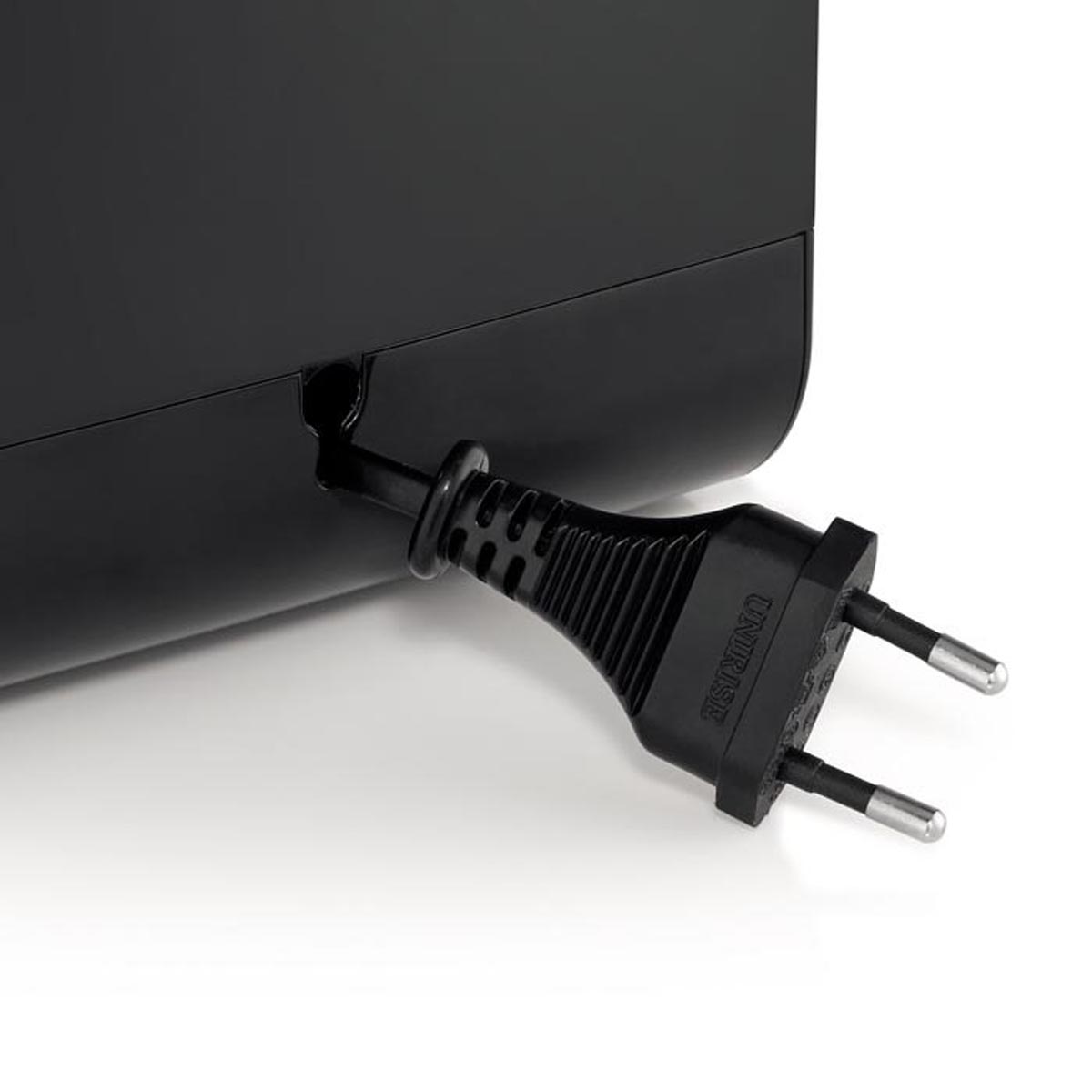Obudowa krajacza wykonana z wytrzymałej odpornej na zarysowania stali nierdzewnej 18/10 Cromargan® w matowym wykończeniu z elementami z tworzywa sztucznego.