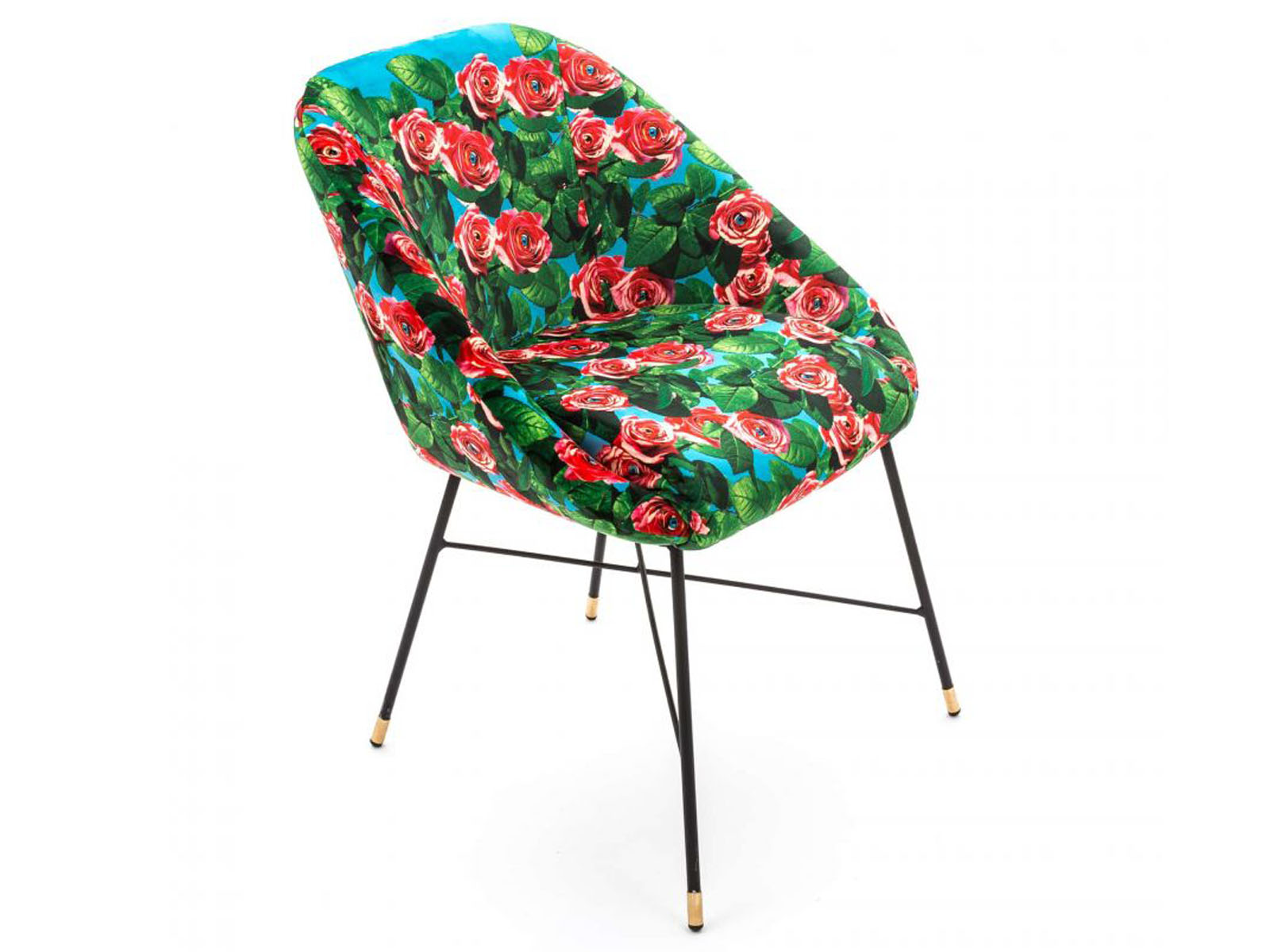 Krzesła z kolekcji Seletti Toiletpaper to nawiązujące formą stylistyczną do lat 50. wygodne tapicerowane krzesła, w można wręcz powiedzieć, że fotele o obłych kształtach. Krzesła posiadają metalowe nóżki.