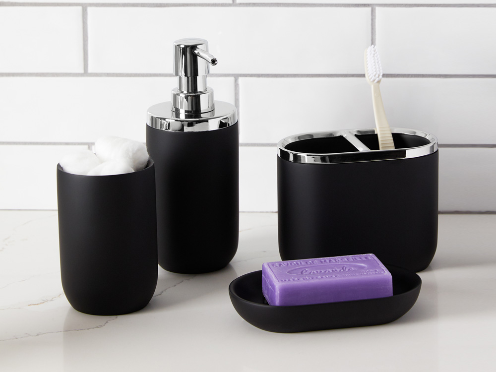 Akcesoria łazienkowe z serii Junip inspirowane są wyglądem tradycyjnych butelek aptecznych, ale posiadają nowoczesne kształty i wykończenie.
