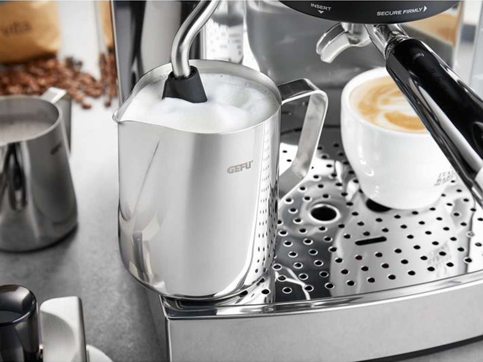 Kubek do mleka GEFU Barista to niezastąpione naczynie do tworzenia perfekcyjnej pianki i serwowania ulubionych napojów kawowych.