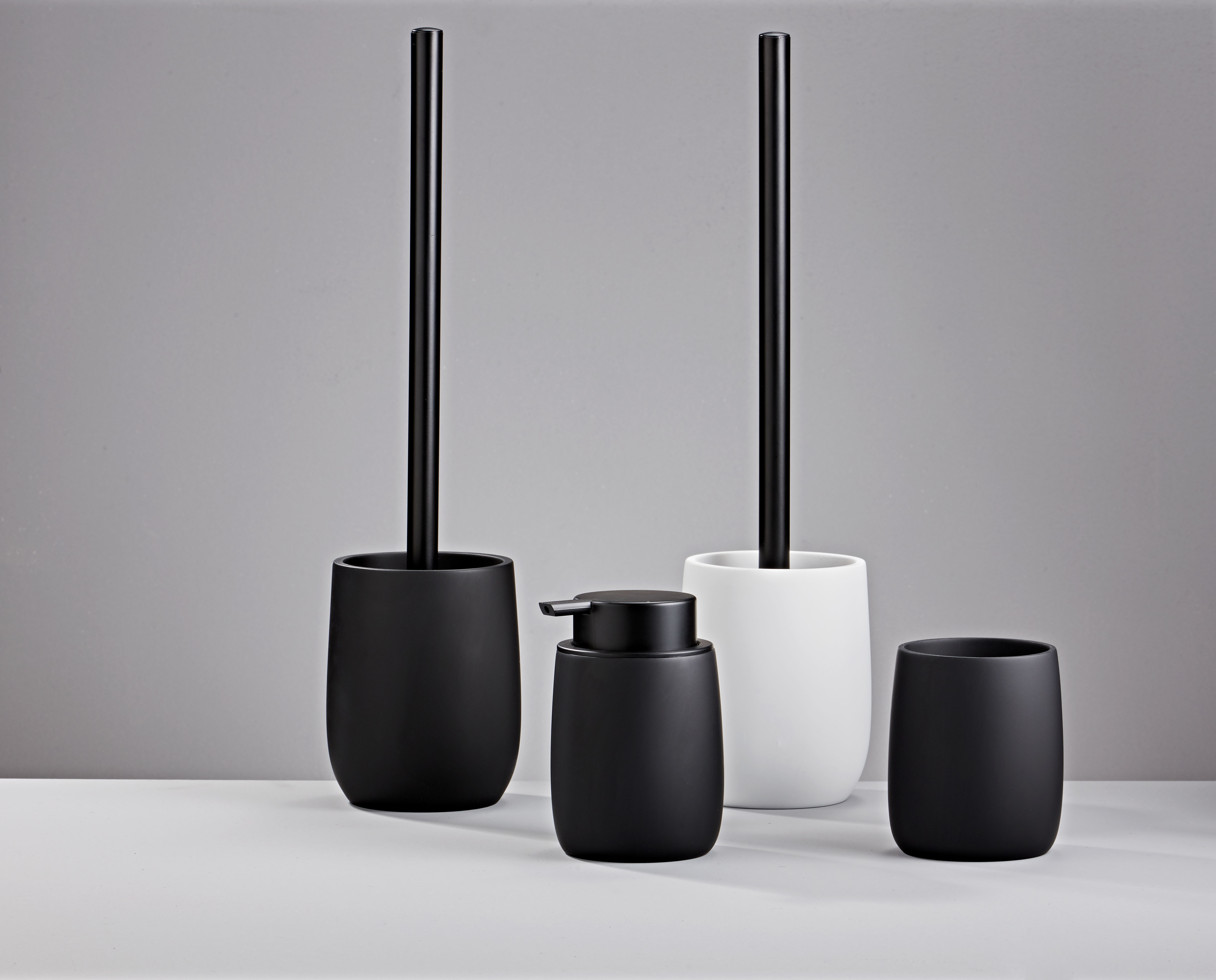W kolekcji Bonny znajdują się dozownik, kubeczek oraz szczotka do WC.