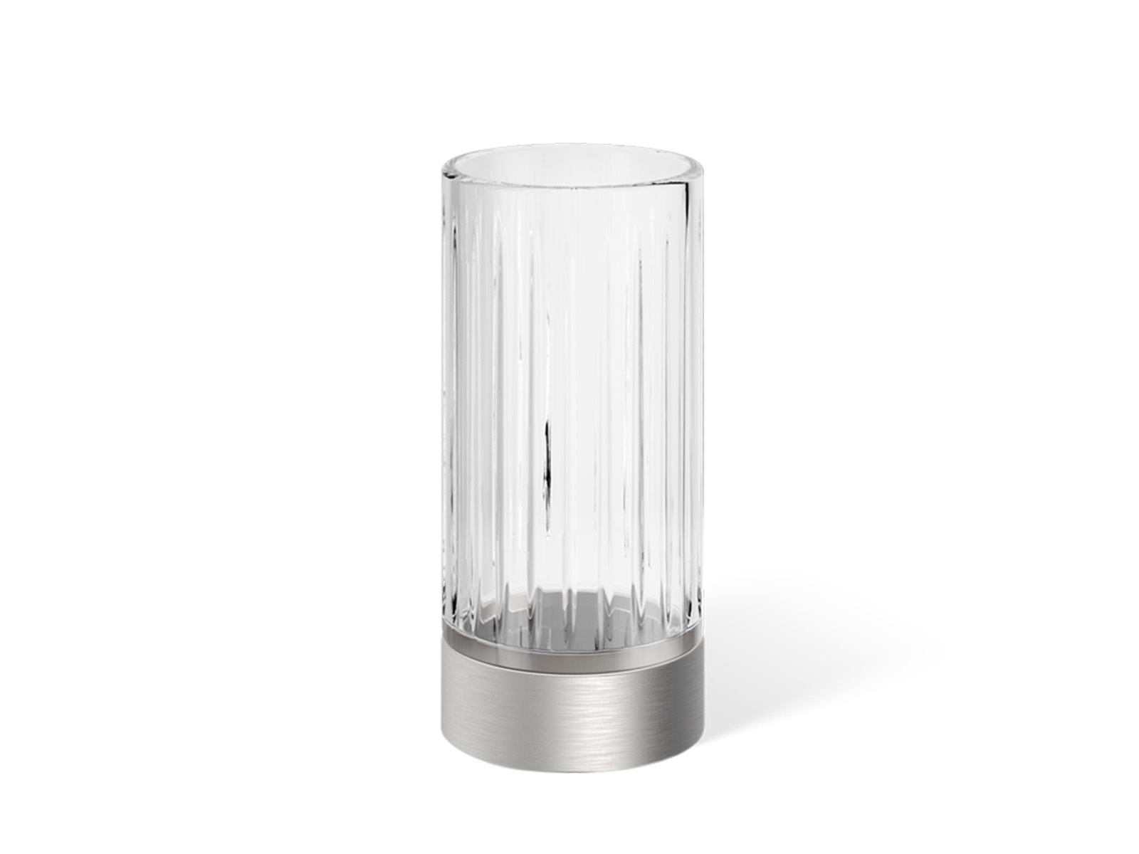 Elegancki nablatowy okrągły kubeczek łazienkowy wykonany z ciętego przezroczystego bezbarwnego szkła kryształowego.