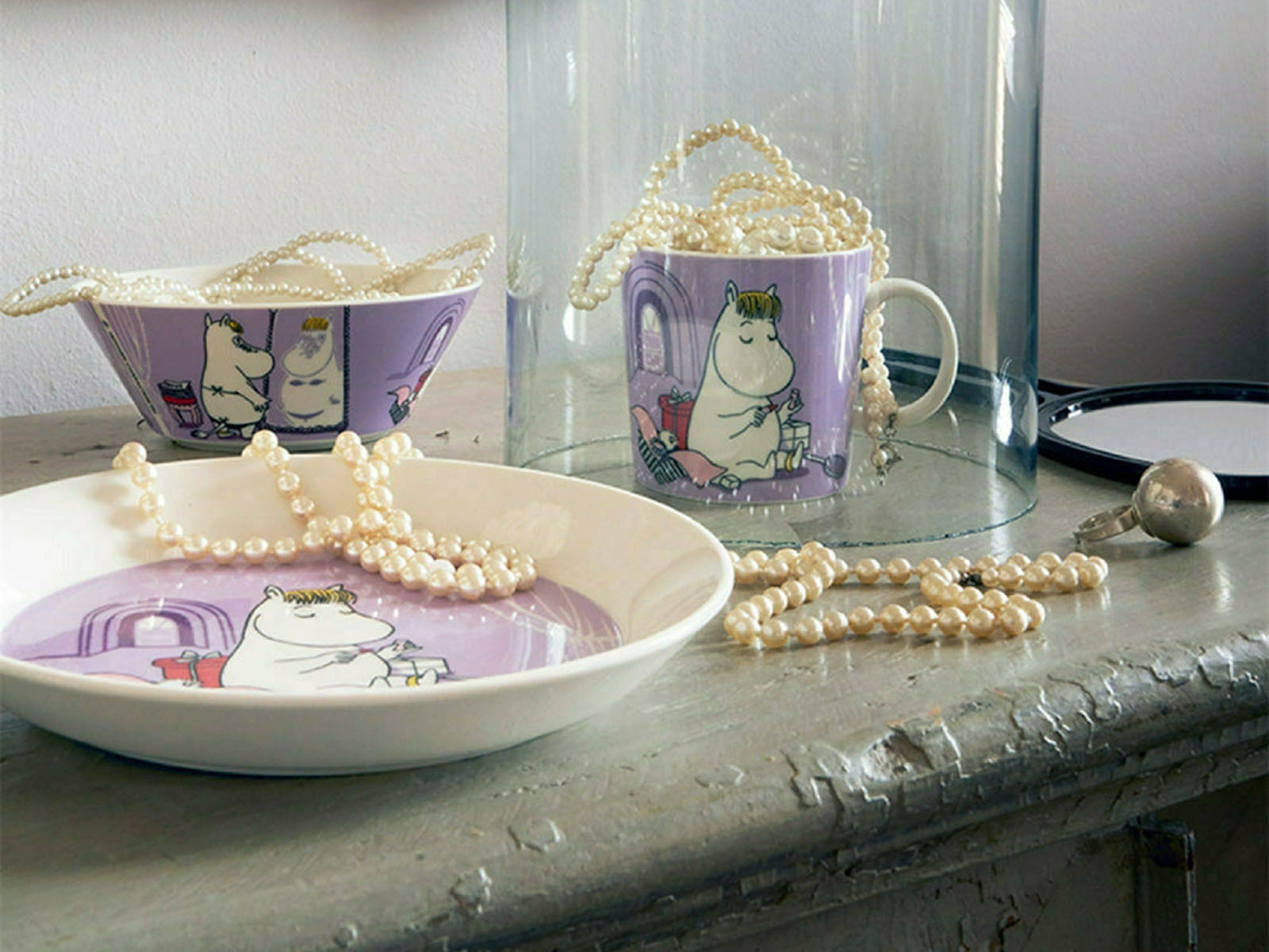 Kolekcja Moomin jest obecna w ofercie marki Arabia Finland od lat 50-tych, a pierwsze rysunki, które miały znakeźć sie na produktach zatwierdzała sama autorka Muminków, pisarka Tove Jansson.