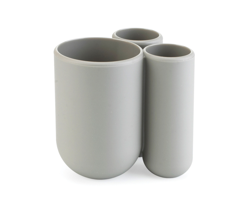 Trzykomorowy kubek/stojak na szczoteczki do zębów z "miękkiego w dotyku" tworzywa.