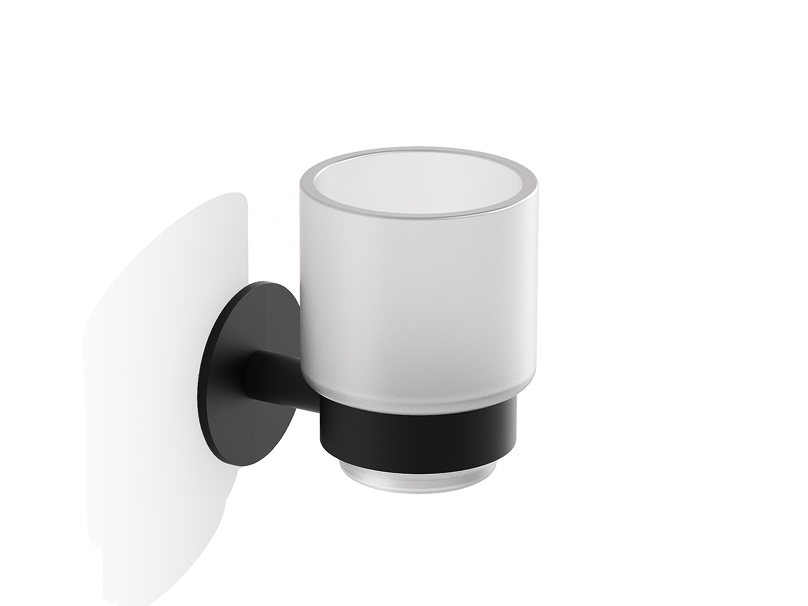 Kubeczek do bezinwazyjnego montażu na płytkach, szkle lub innej gładkiej powierzchni za pomocą warstwy samoprzylepnej umieszczonej na okrągłym mocowaniu podstawy kubka.