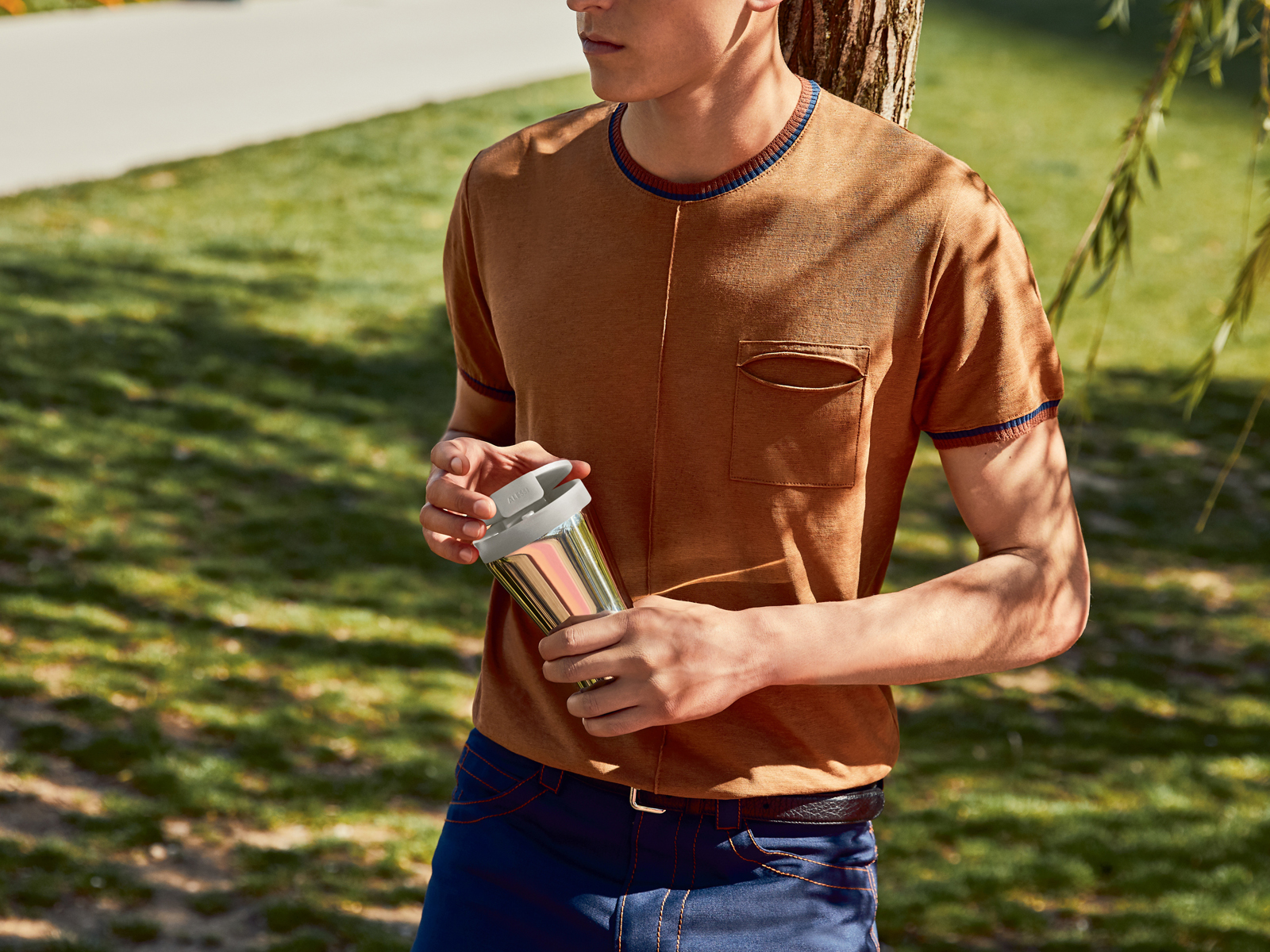 Kubek podróżny termiczny Caffa to elegancki i funkcjonalny produkt, zaprojektowany przez renomowanego projektanta Giulio Iacchetti. Wykonany z wysokiej jakości stali nierdzewnej 18/10 oraz wytrzymałej żywicy termoplastycznej, zapewnia doskonałą izolację termiczną. Dzięki podwójnym ściankom, kubek utrzymuje temperaturę napoju przez długi czas – ciepłe napoje pozostają gorące przez 6 godzin, a zimne aż do 12 godzin.