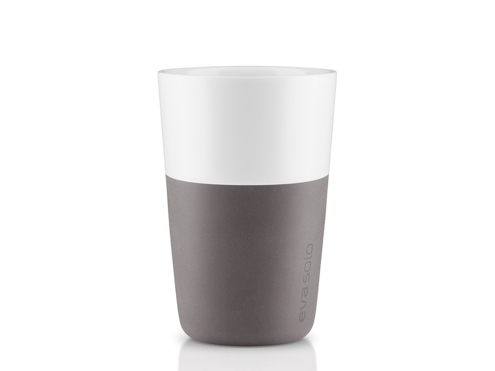 Elegancki i oryginalny zestaw 2 porcelanowych kubków do kawy latte o klasycznym kształcie z ochronną silikonową osłoną.