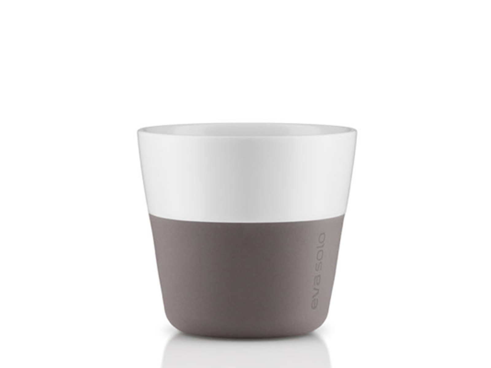 Elegancki i oryginalny zestaw 2 porcelanowych kubków do kawy o klasycznym kształcie z ochronną silikonową osłoną.