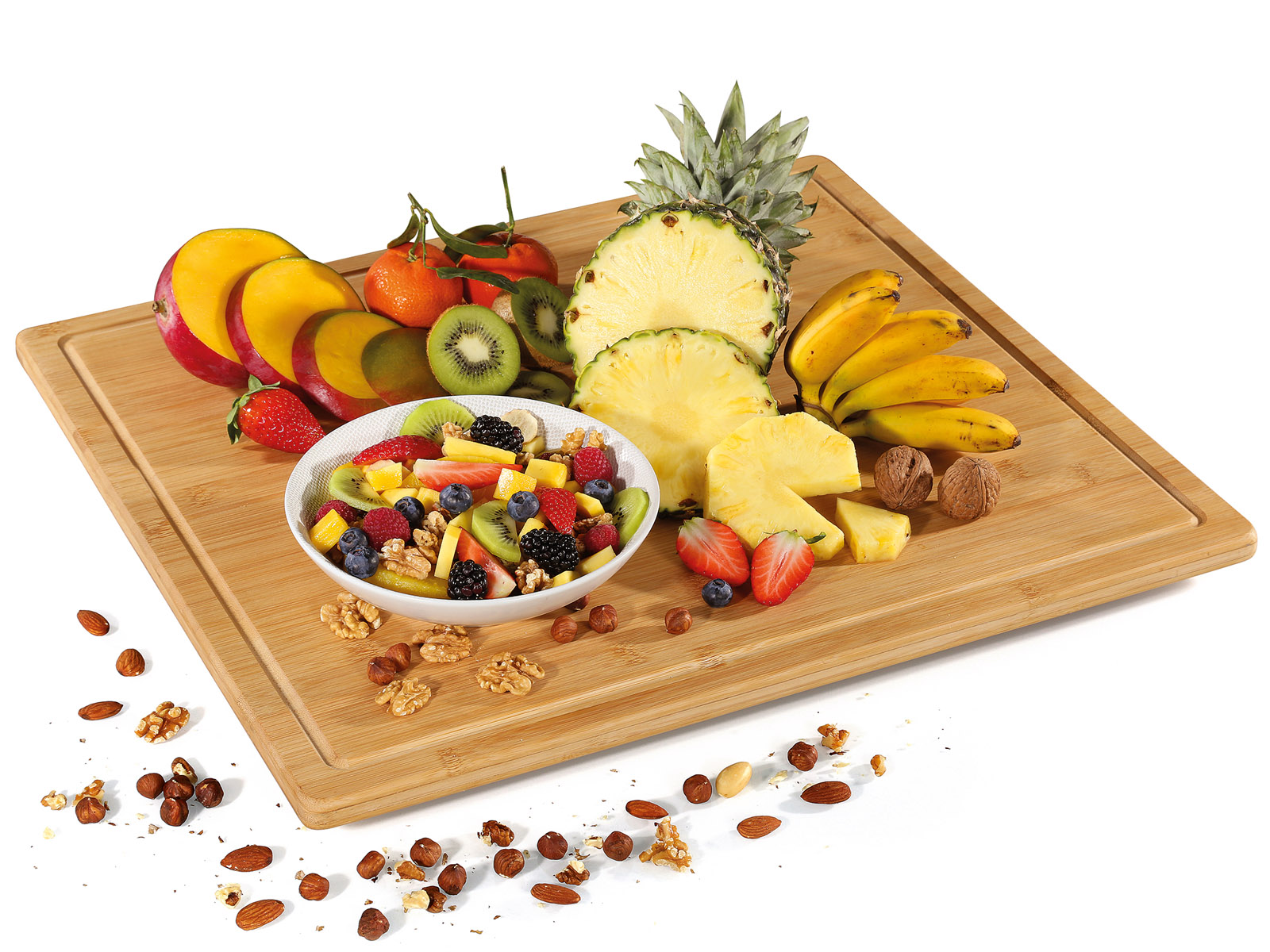 Zassenhaus Bamboo XXL to oryginalna bardzo duża deska bambusowa do serwowania i prezentacji dań. Drewno bambusowe nie chłonie wody, dzięki czemu szybko schnie i uniemożliwia rozwój bakterii.Deska posiada gumowa nóżki zabezpieczające powierzchnię przed zarysowaniem