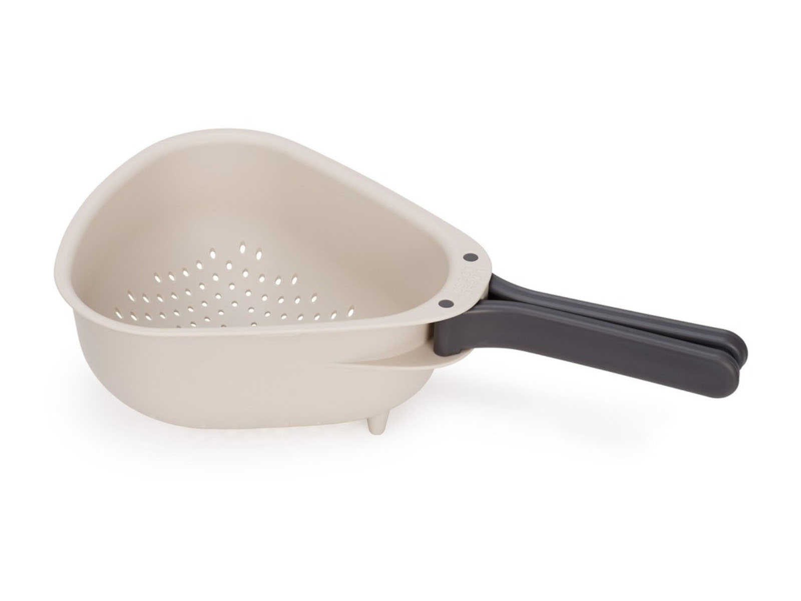 Praktyczny durszlak kuchenny o kompaktowej, trójkątnej konstrukcji