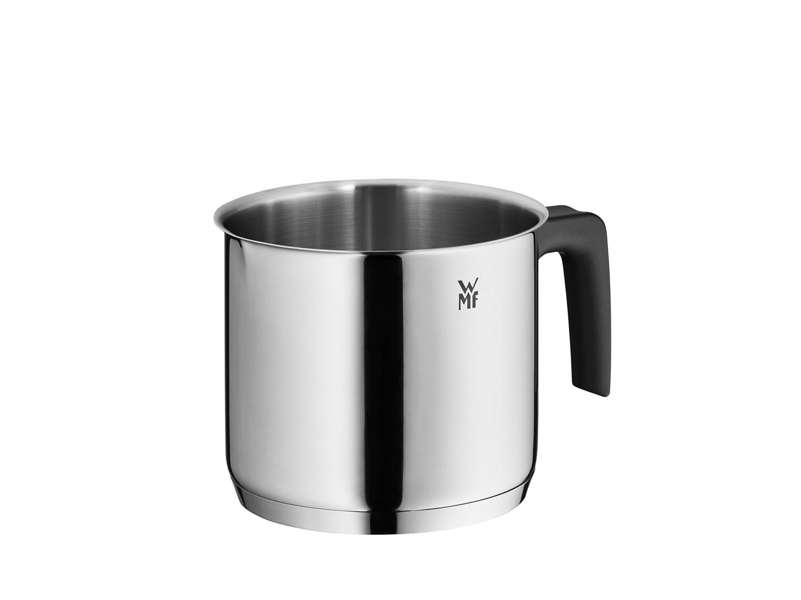 Elegancki i solidny garnek do mleka o pojemności 1,7 litra o smukłym i wysokim kształcie, który zapobiega rozpryskom na kuchence podczas podgrzewania mleka, przygotowywania budyniu, gorącej czekolady, kaszy manny lub mieszania lukru do ciast, a także podczas gotowania jajek.