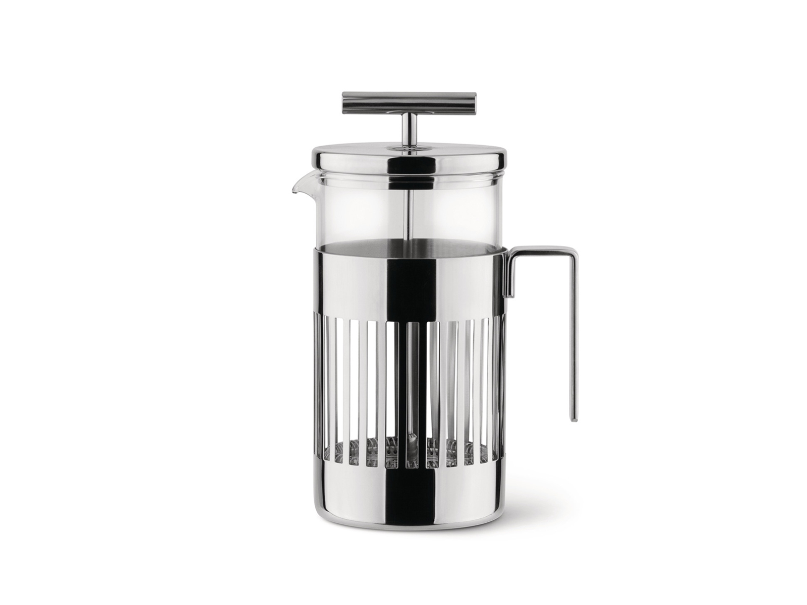 Zaparzacz Alessi 9094 to elegancki zaparzacz tłokowy przeznaczony do przygotowywania 3 filiżanek espresso. Zbudowany jest z cylindrycznego, ażurowego korpusu z uchwytem oraz szklanego pojemnika z tłokiem.